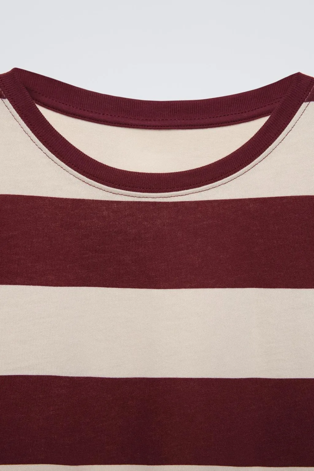 Camiseta con cuello redondo y manga larga. Estampado de raya ancha.