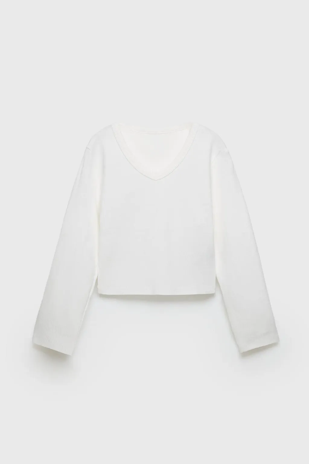 Camiseta rib con cuello pico y manga larga.