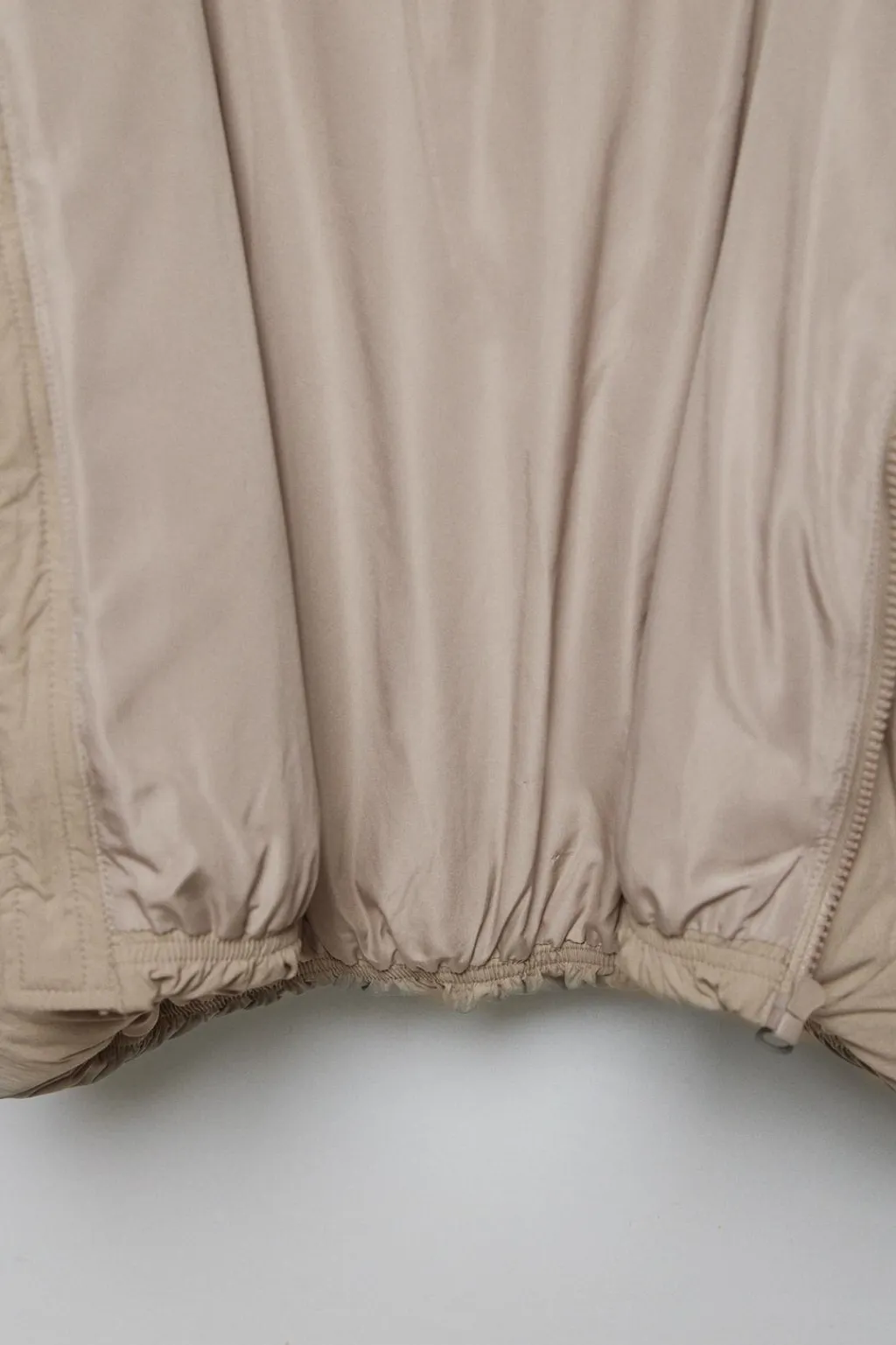 Cazadora con fit oversize. Con capucha, cuello subido y manga larga acabada en goma. Cierre cremallera frontal. Bolsillos en delantero ocultos por costura. Bajo acabado en goma. Forro interior combinado color a tono.