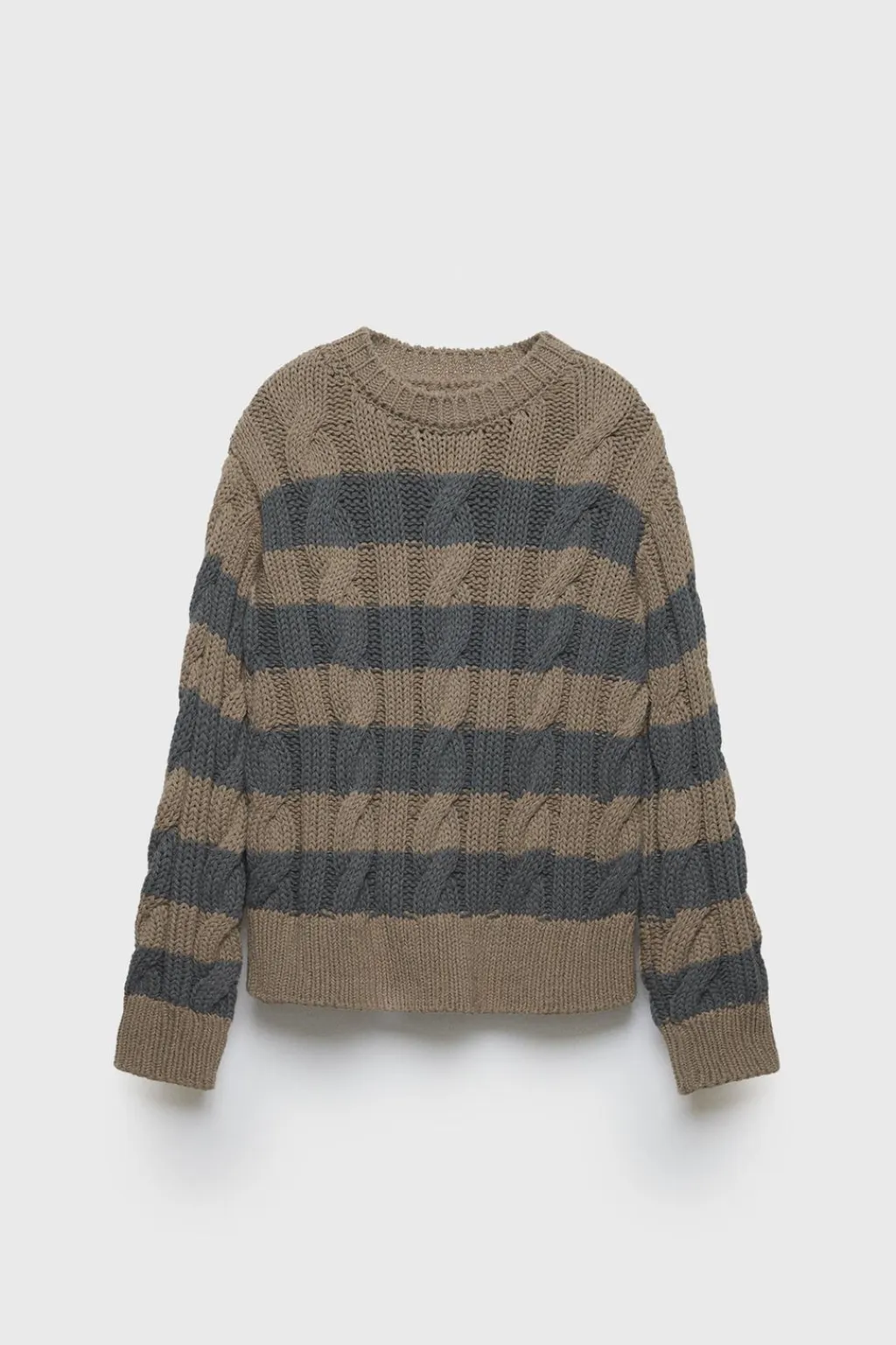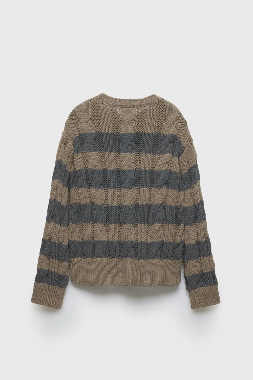 Jersey de punto con cuello redondo y manga larga acabada en puño. Detalle ochos y estampado de rayas.