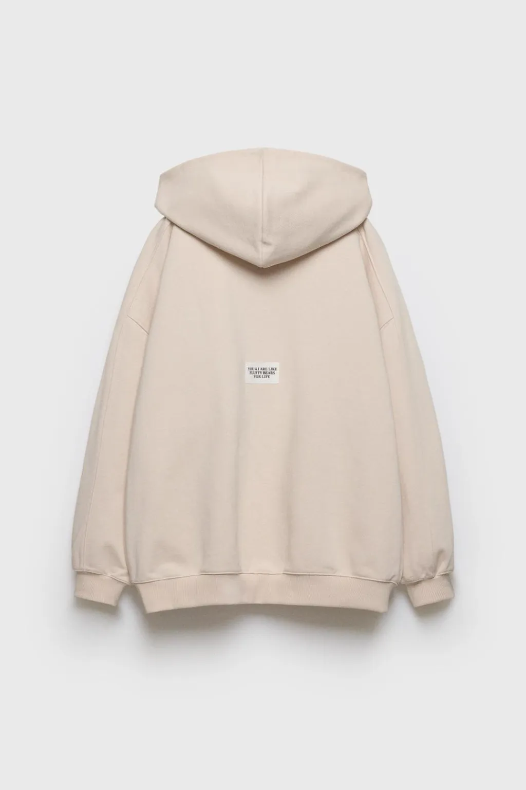 Sudadera con capucha y manga larga, acabados en rib. Estampado de oso en delantero y aplique etiqueta en espalda.