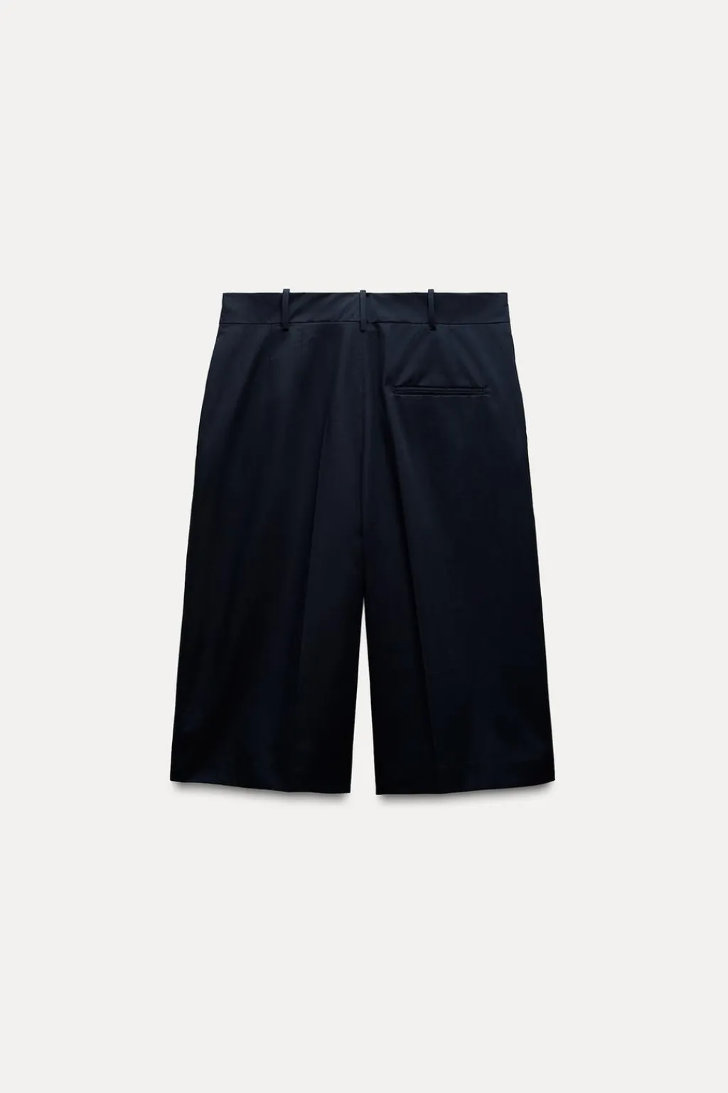 Bermuda confeccionada en hilatura de algodón 100%. Tiro medio y cintura con trabillas. Bolsillos delanteros. Detalle de raya planchada en delantero. Cierre frontal con cremallera, botón y gancho metálico.