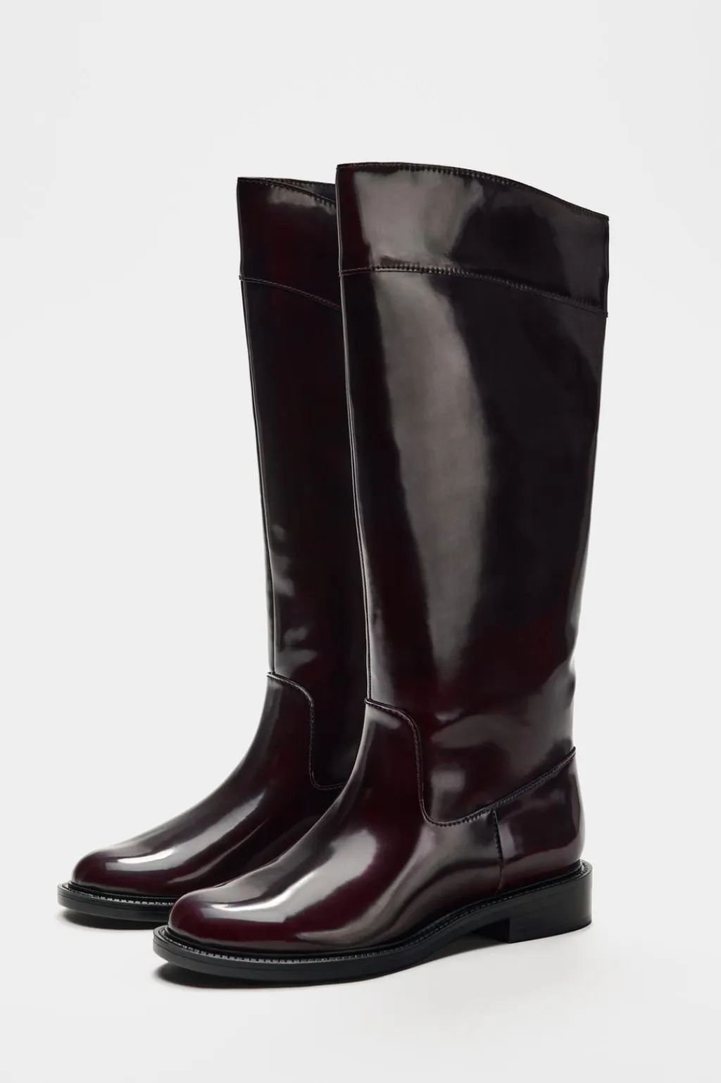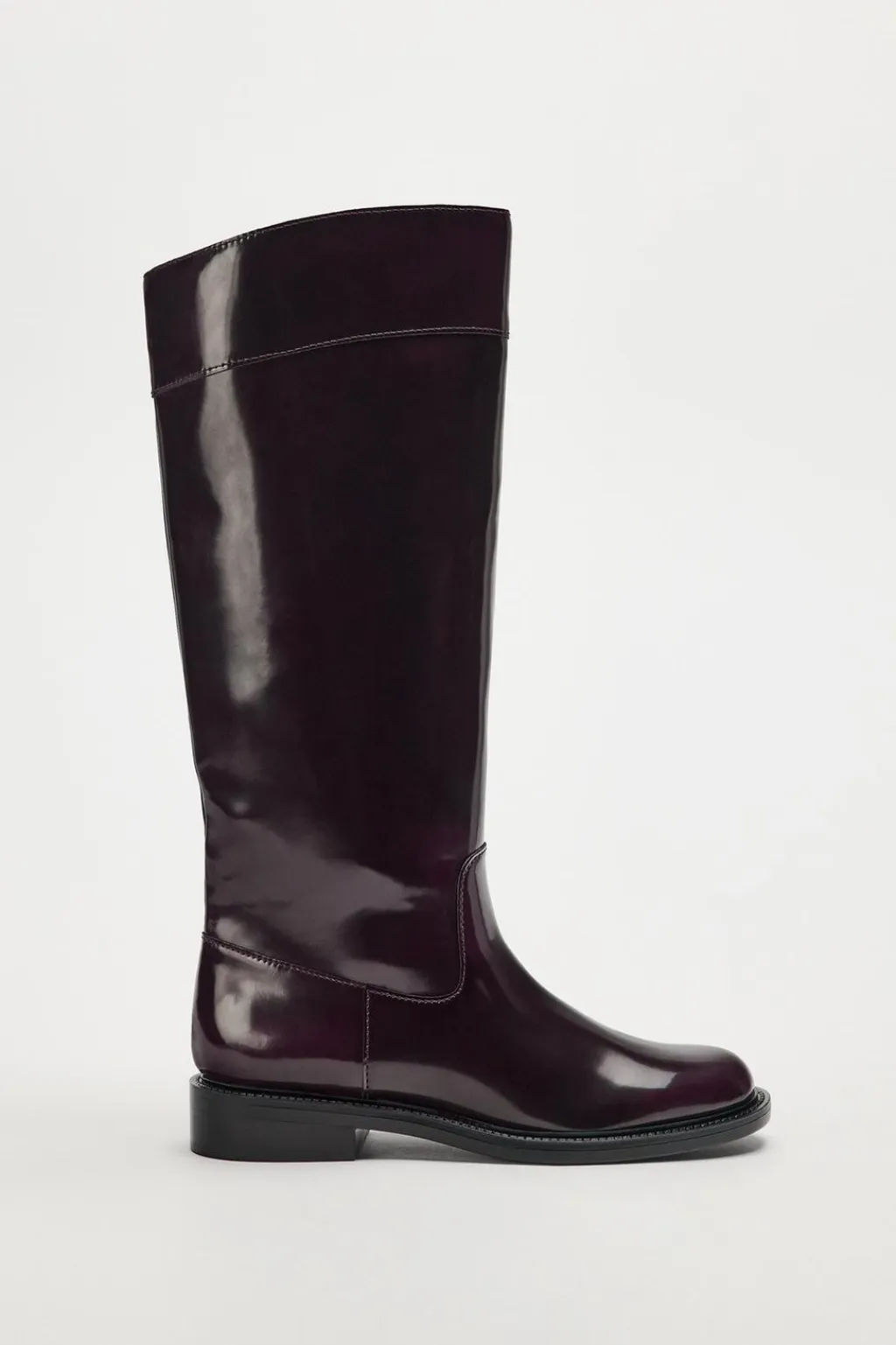 Zapato tipo bota plana. Caña alta. Acabado en punta redonda.