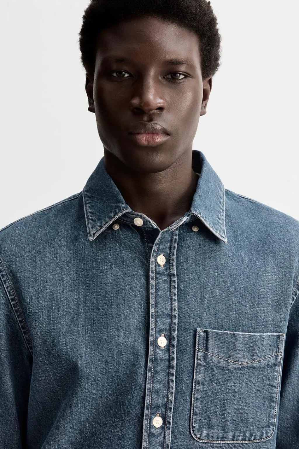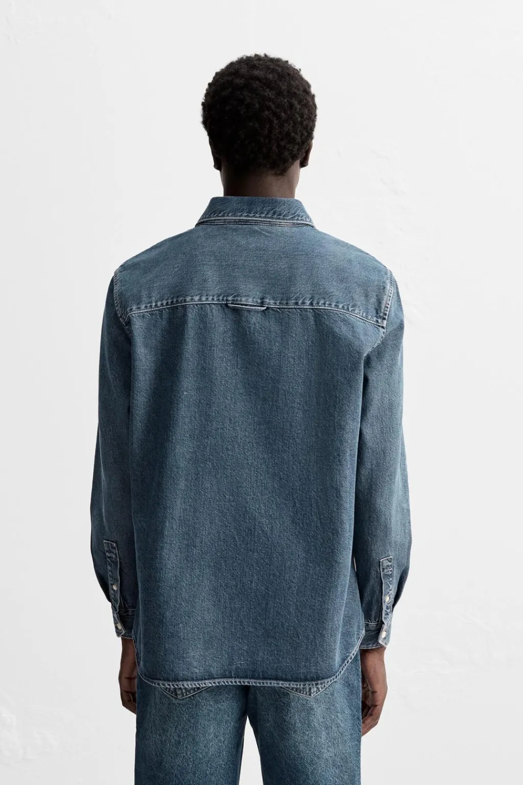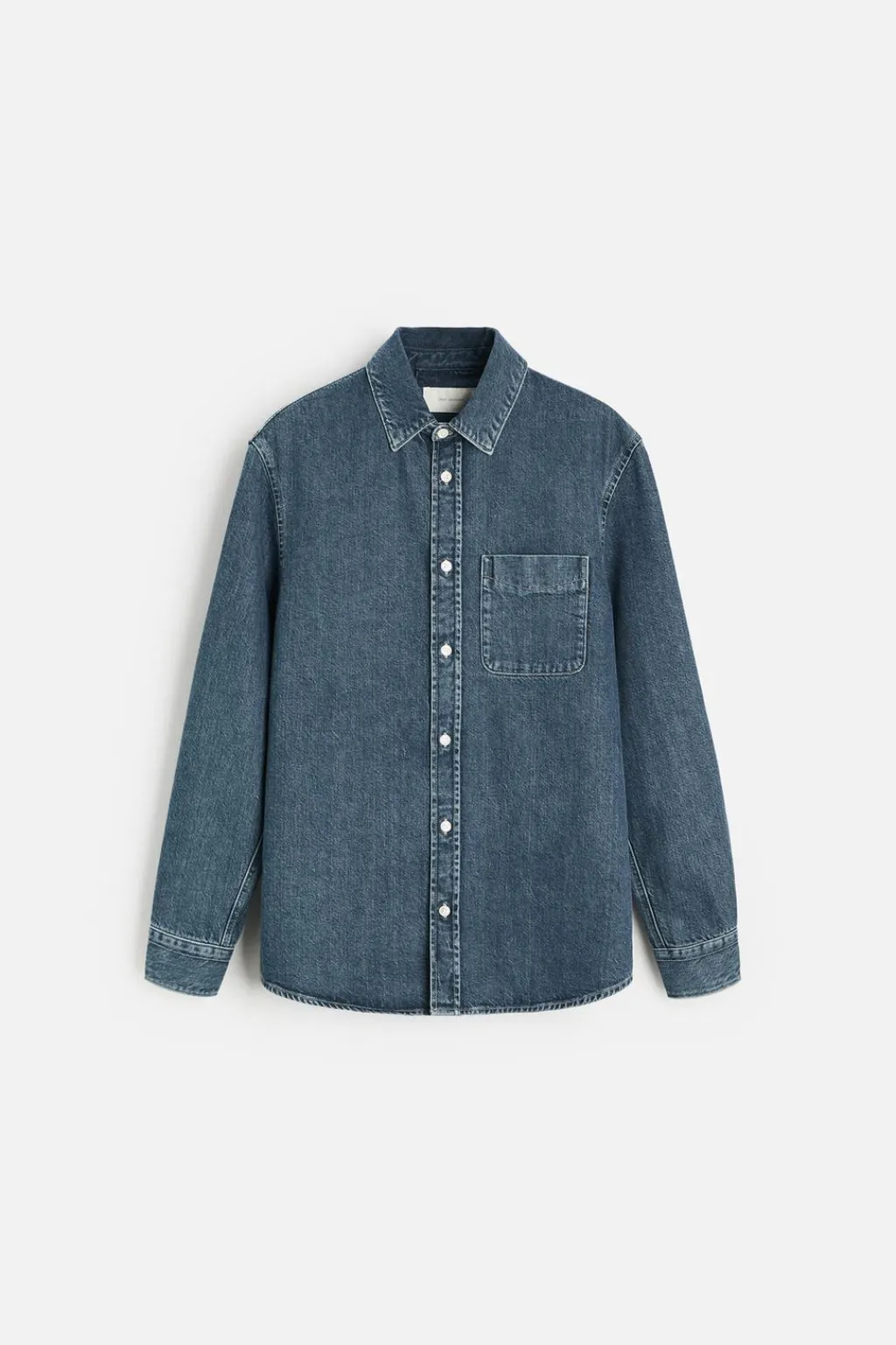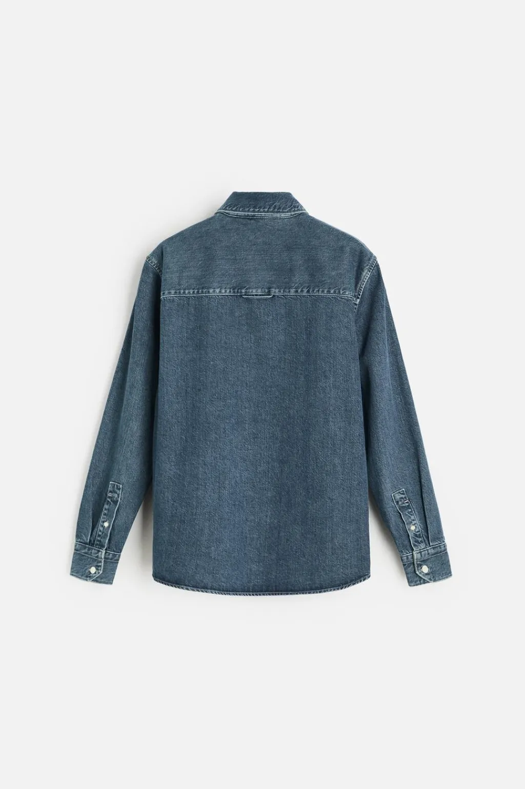 Camisa relaxed fit confeccionada en denim de algodón. Cuello solapa y manga larga acabada en puño con botón. Bolsillos de plastrón en pecho. Efecto lavado. Cierre frontal de botonadura.