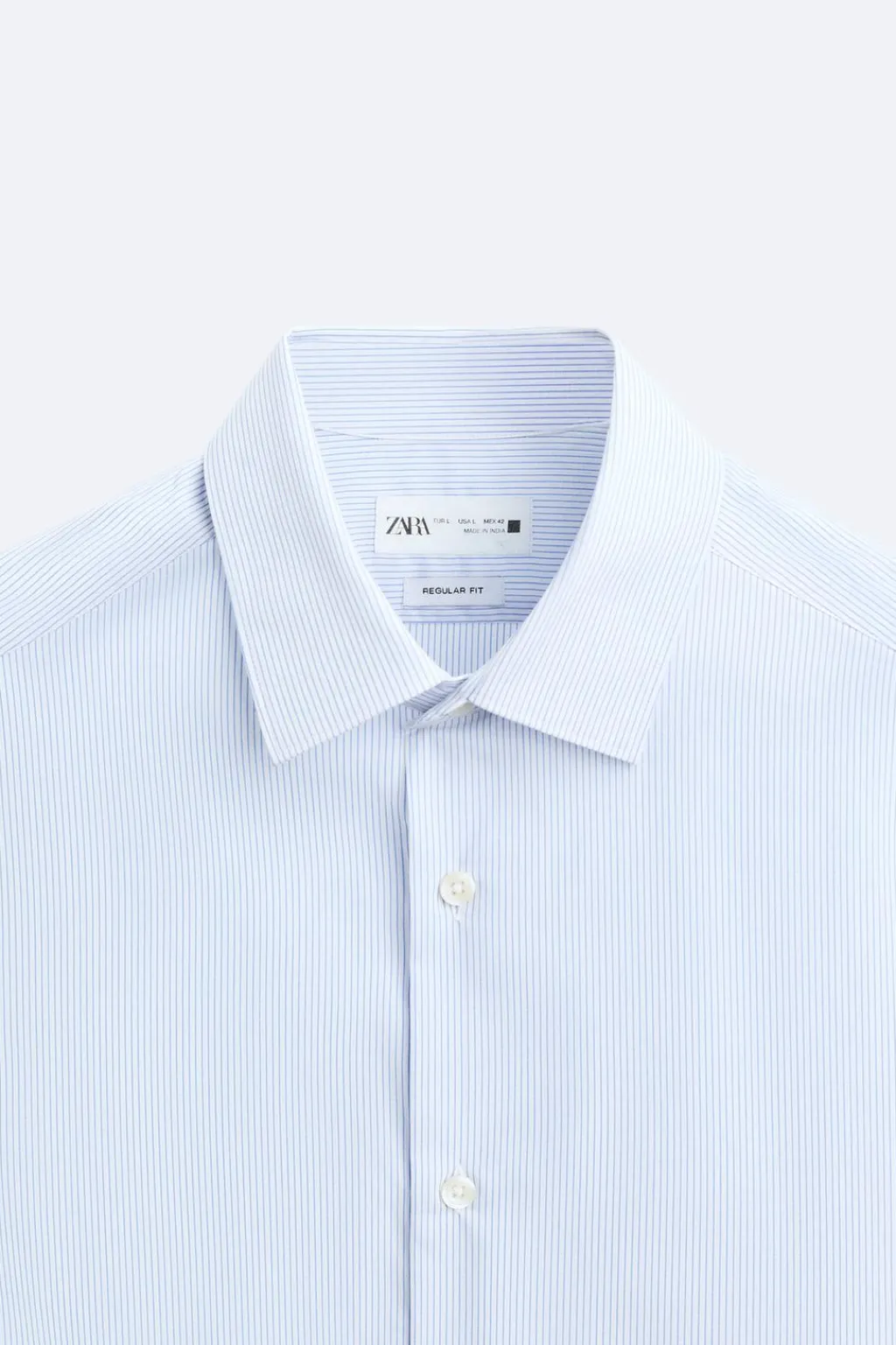 Camisa regular fit confeccionada en tejido de algodón. Cuello italiano y manga larga acabada en puño con botón. Cierre frontal de botonadura.