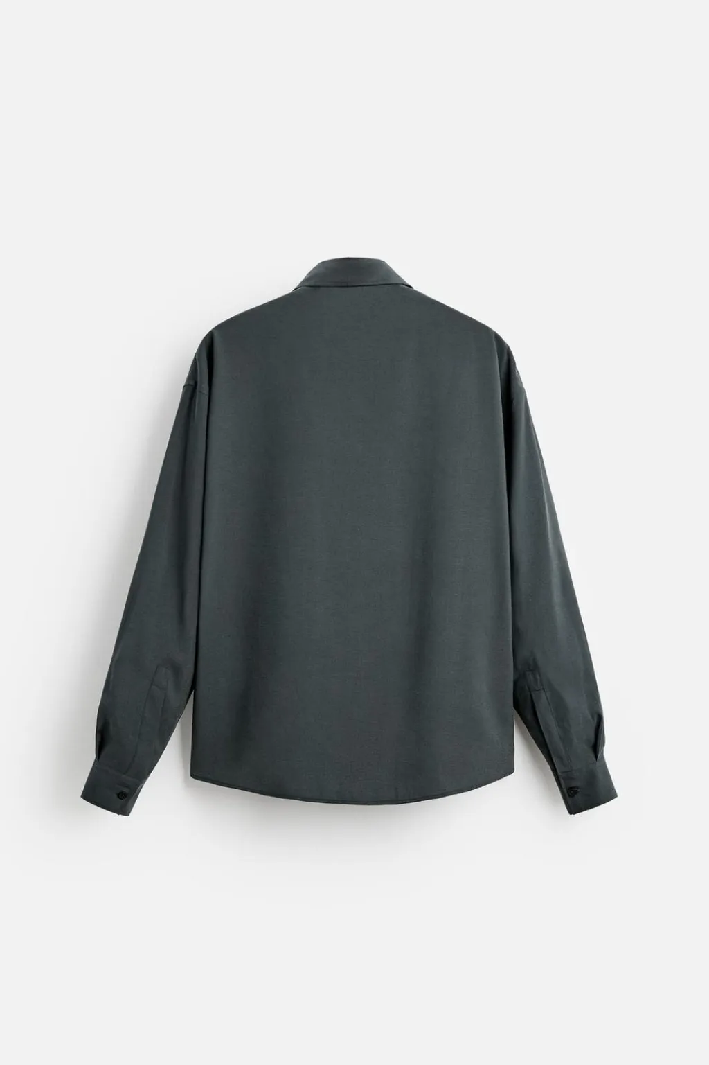 Camisa relaxed fit confeccionada en tejido con mezcla de modal. Cuello italiano y manga larga acabada en puño con botón. Cierre frontal de botonadura.
