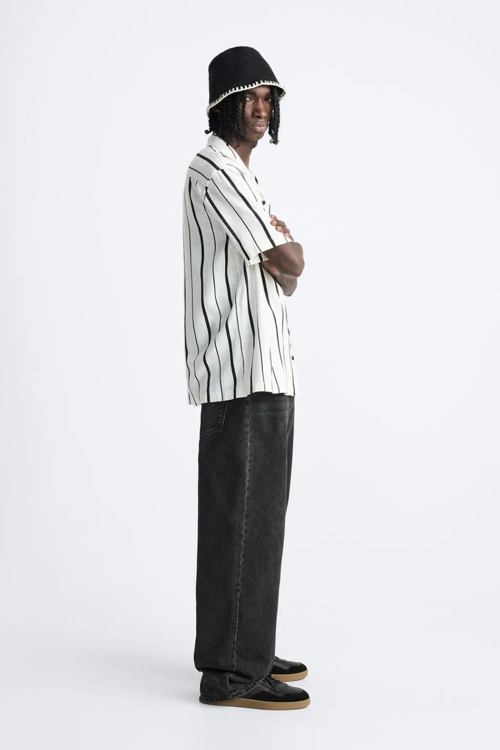Camisa relaxed fit confeccionada en tejido con viscosa. Cuello bowling y manga corta. Cierre frontal de botonadura.