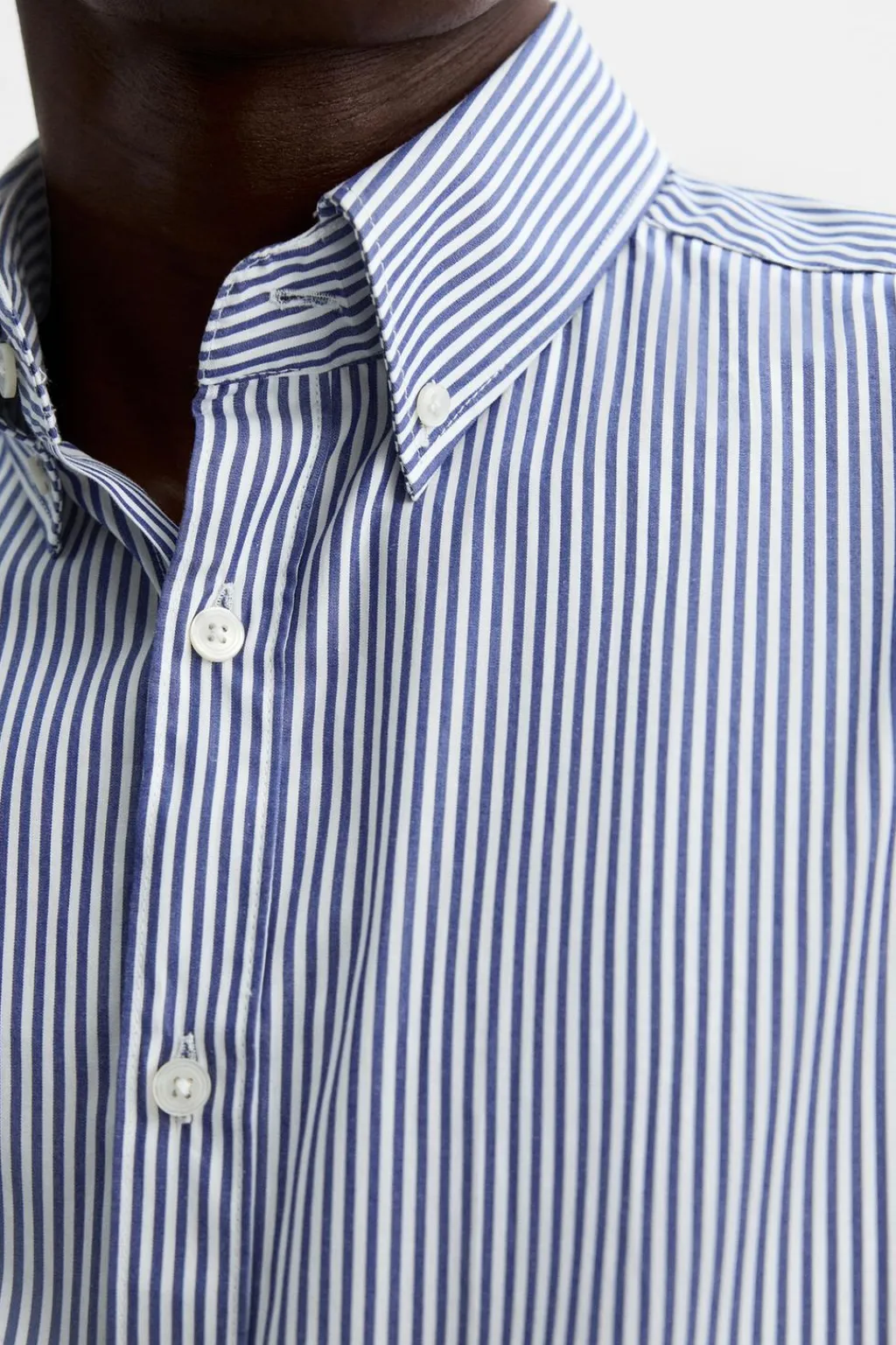 Camisa regular fit confeccionada en tejido de algodón. Cuello italiano y manga larga acabada en puño con botón. Cierre frontal de botonadura.