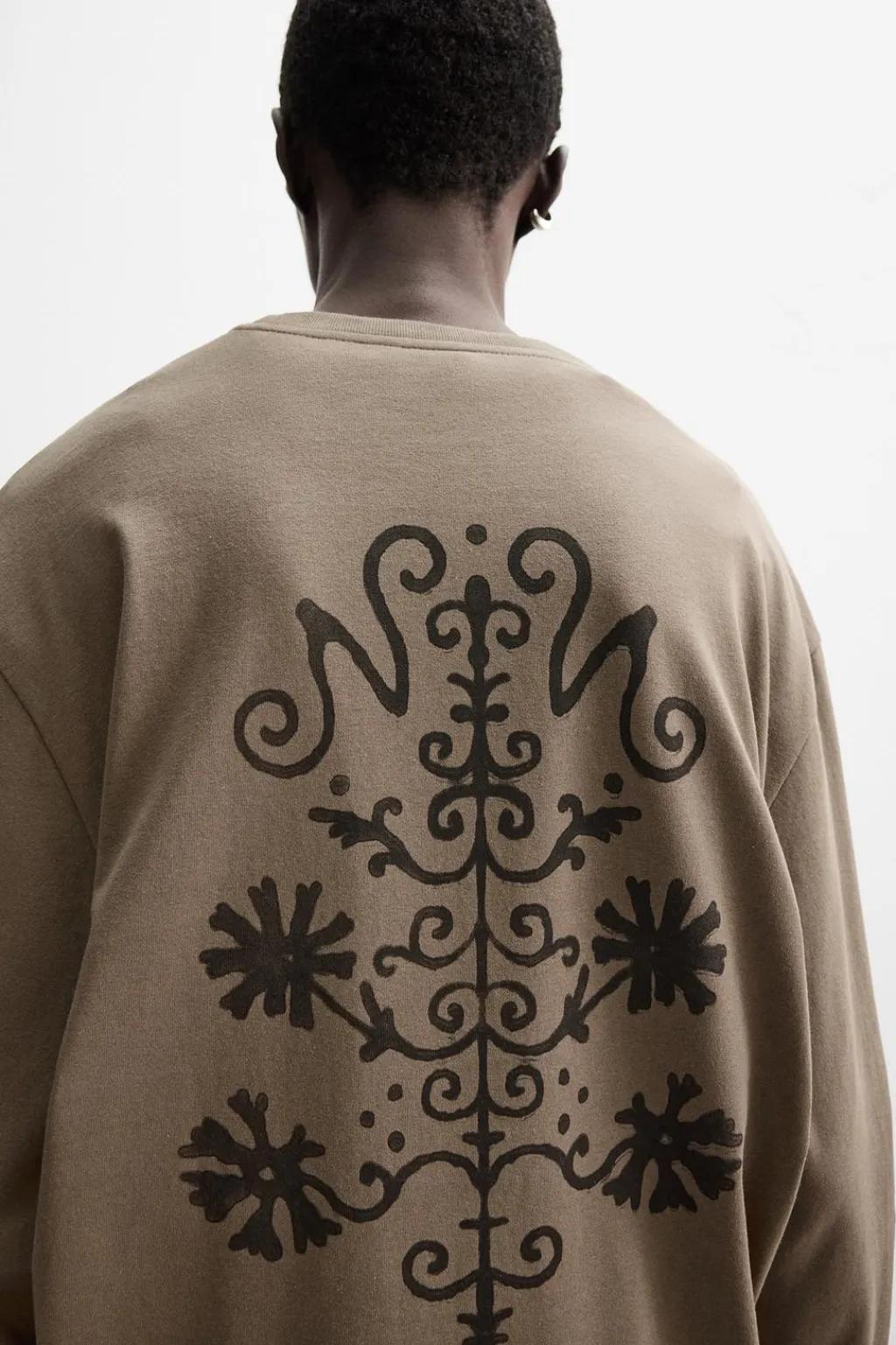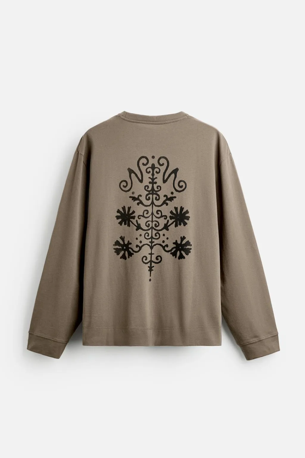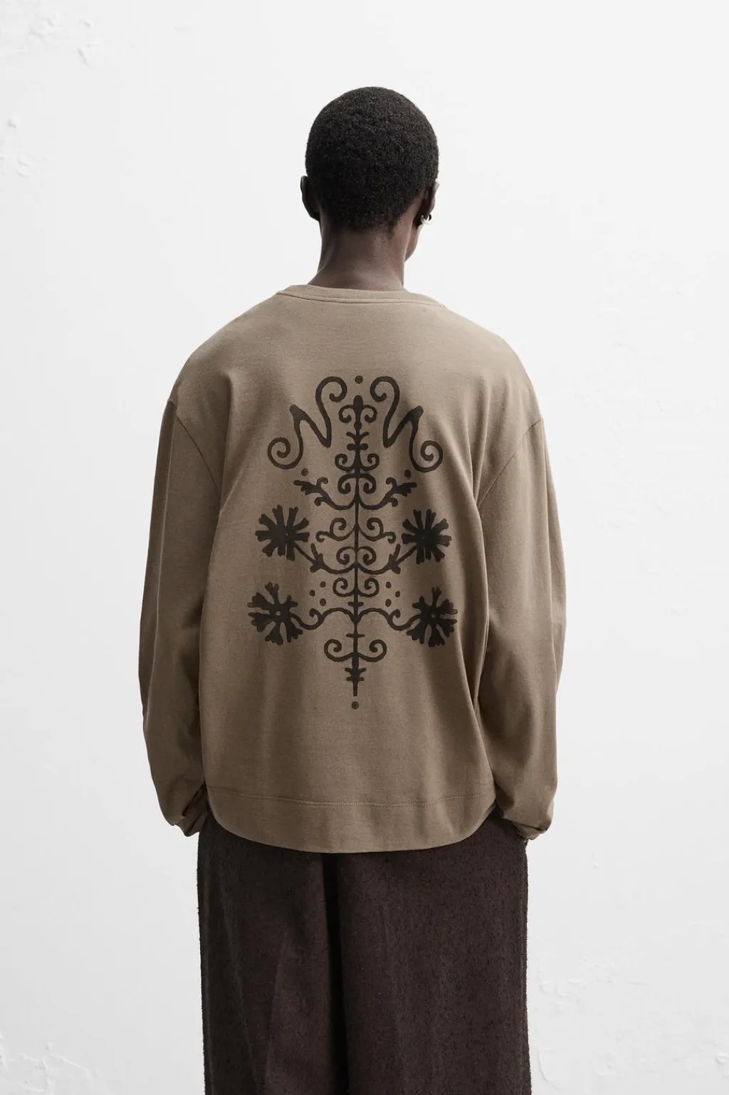 Camiseta relaxed fit. Cuello redondo y manga larga. Estampado combinado a contraste en espalda.