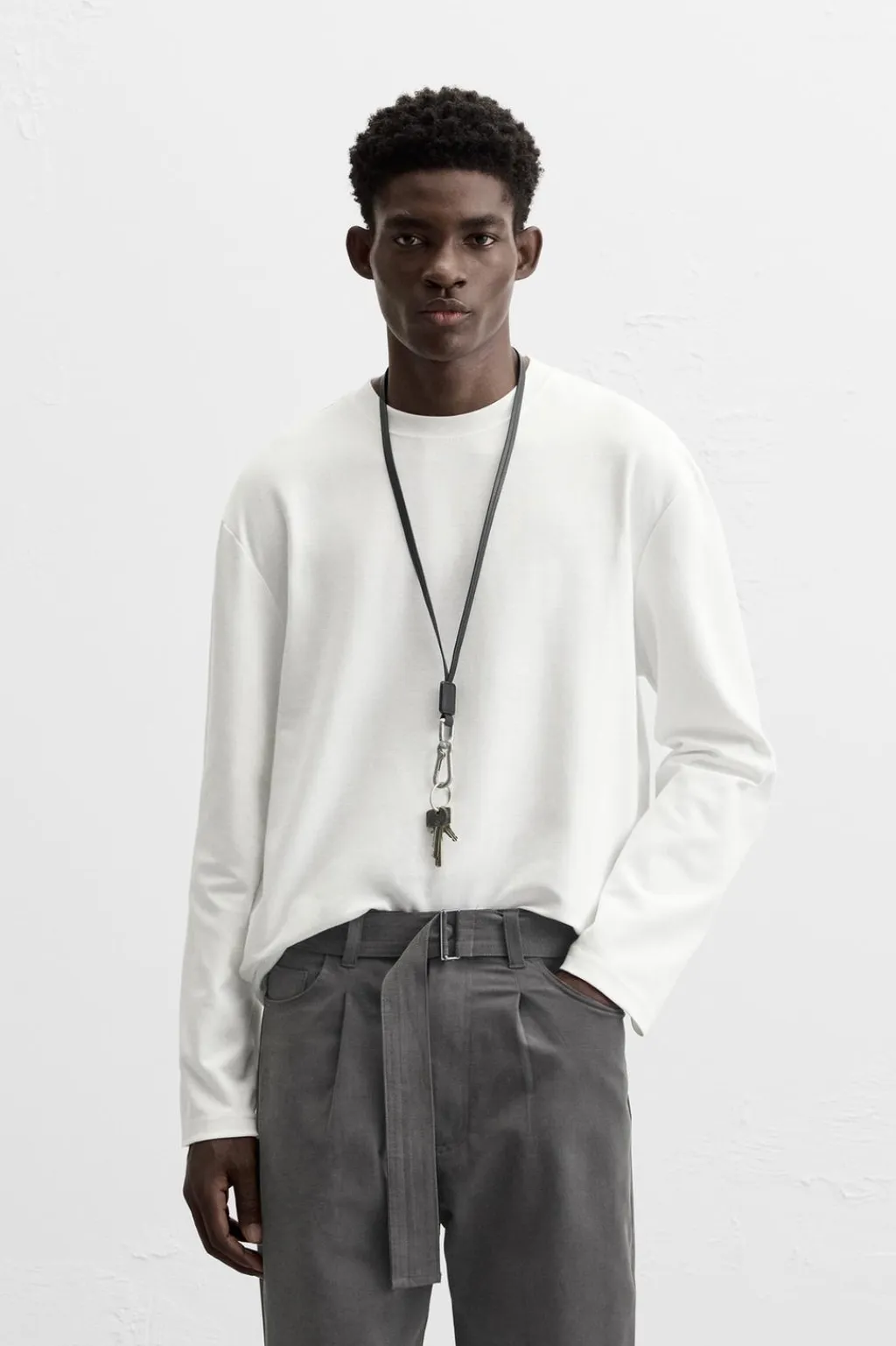 Camiseta regular fit. Cuello redondo y manga larga.
