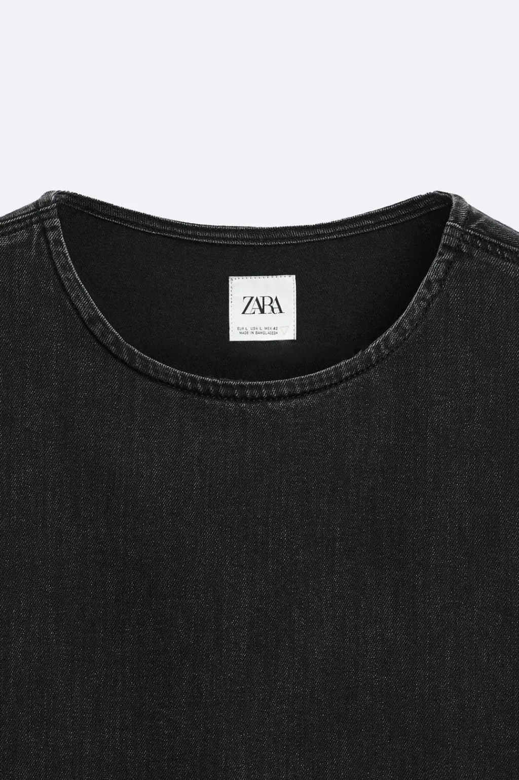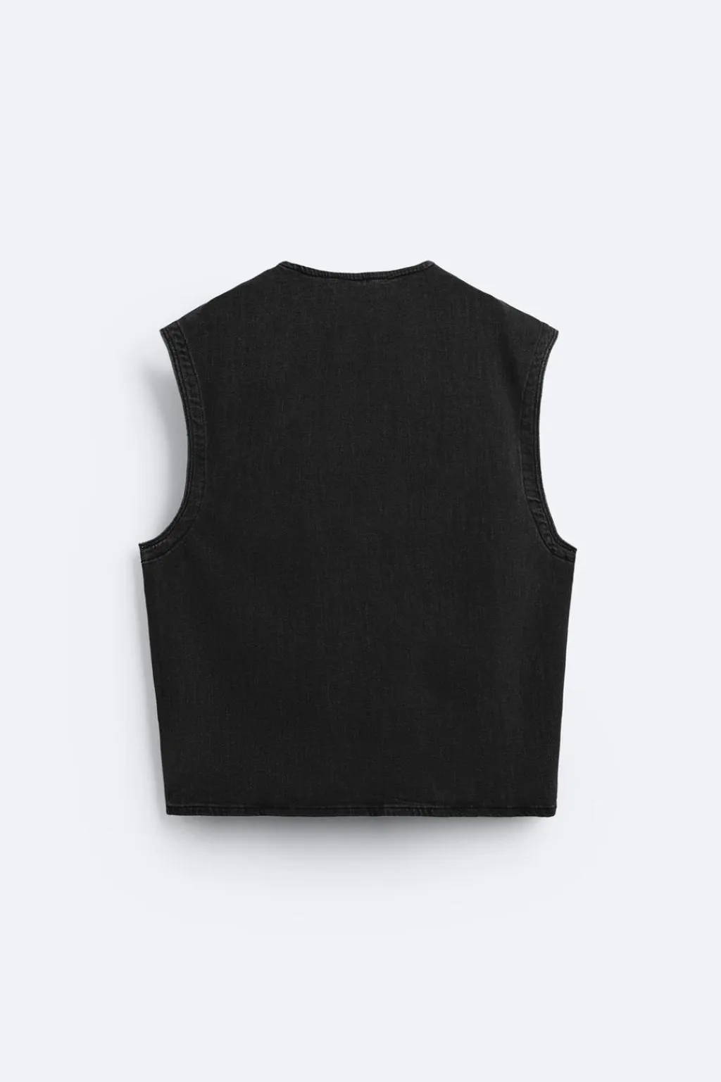 Camiseta relaxed fit confeccionada en denim de algodón. Cuello redondo y manga sisa. Efecto lavado.