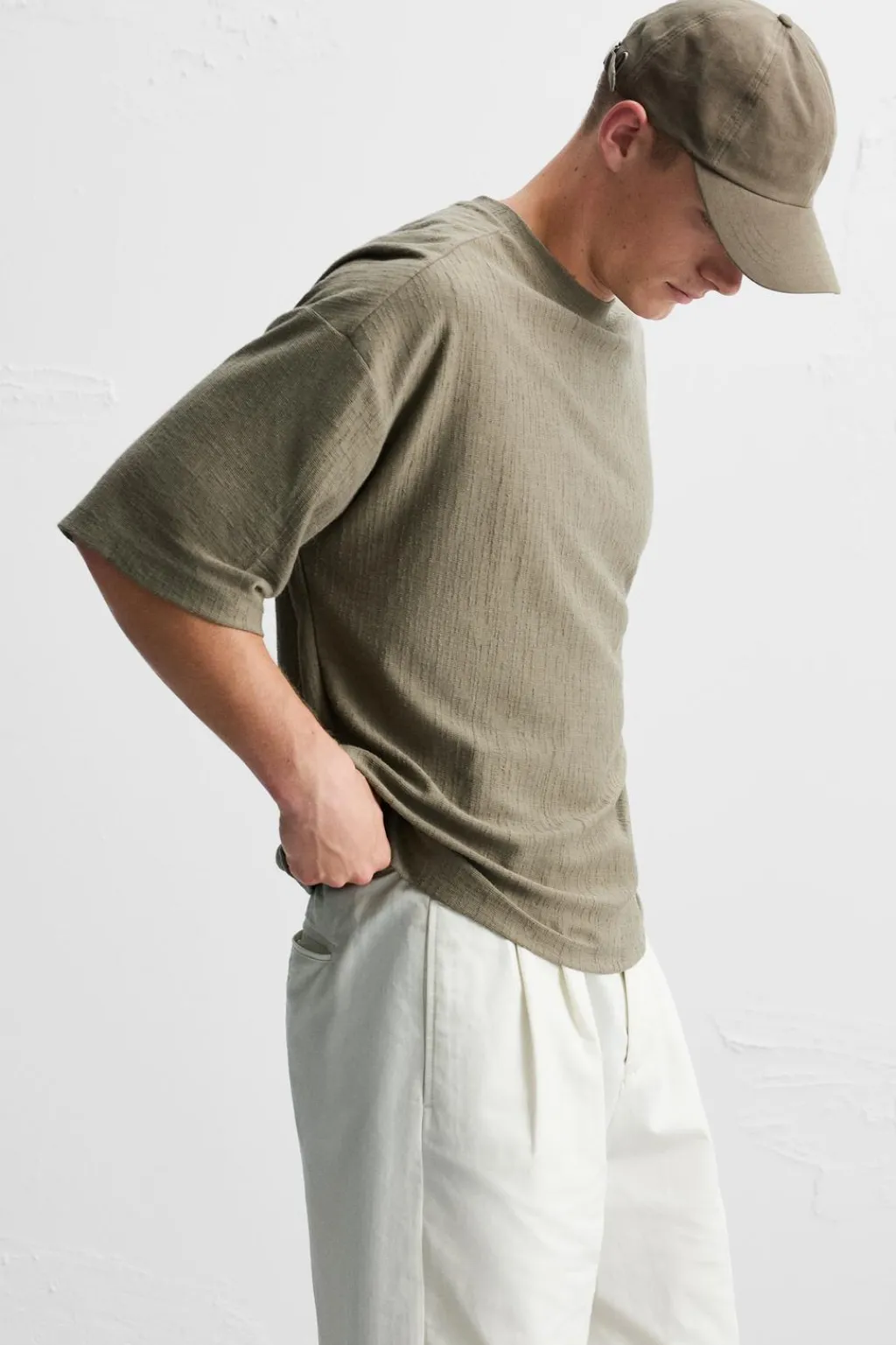 Camiseta relaxed fit. Cuello redondo y manga corta. Bajo con aberturas laterales.