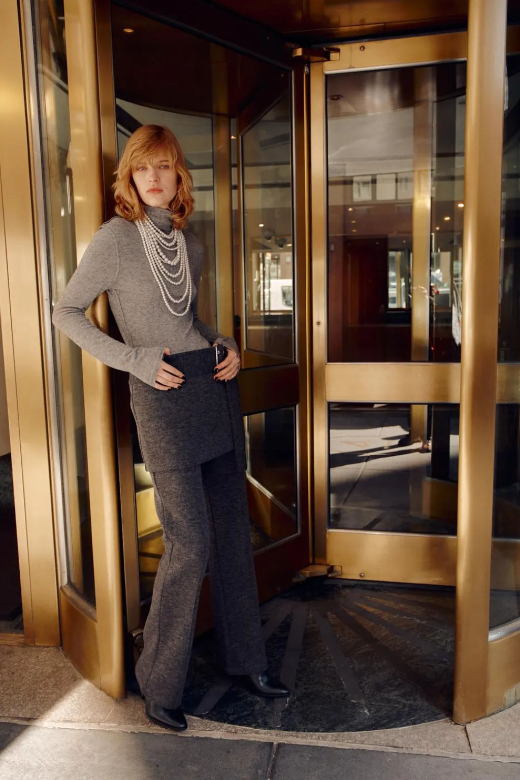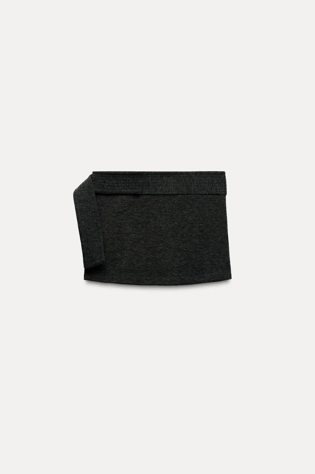 Falda corta de tiro medio. Cinturón en mismo tejido ajustable con hebilla metálica.