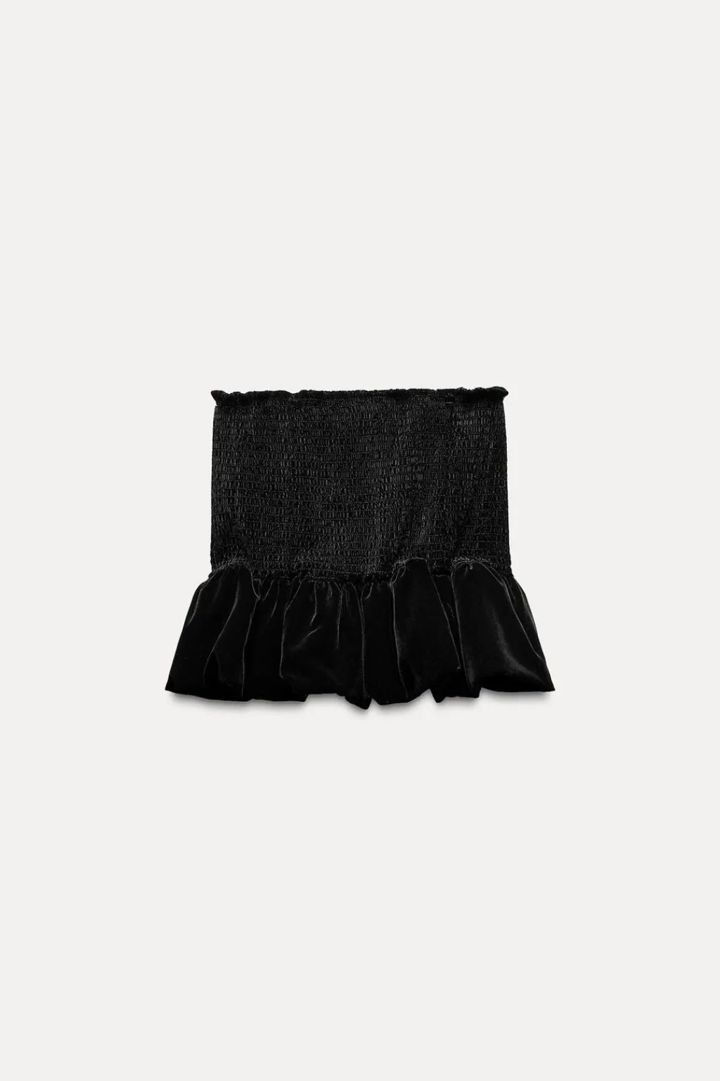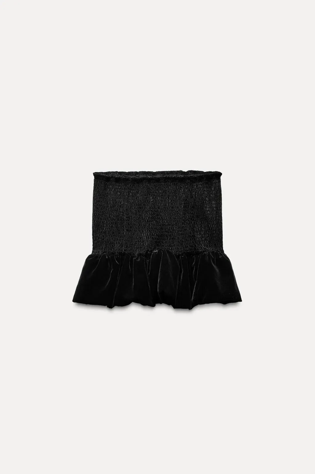 Falda pantalón de tiro medio. Tejido elástico tipo nido de abeja. Forro interior tipo shorts. Bajo acabado abullonado.