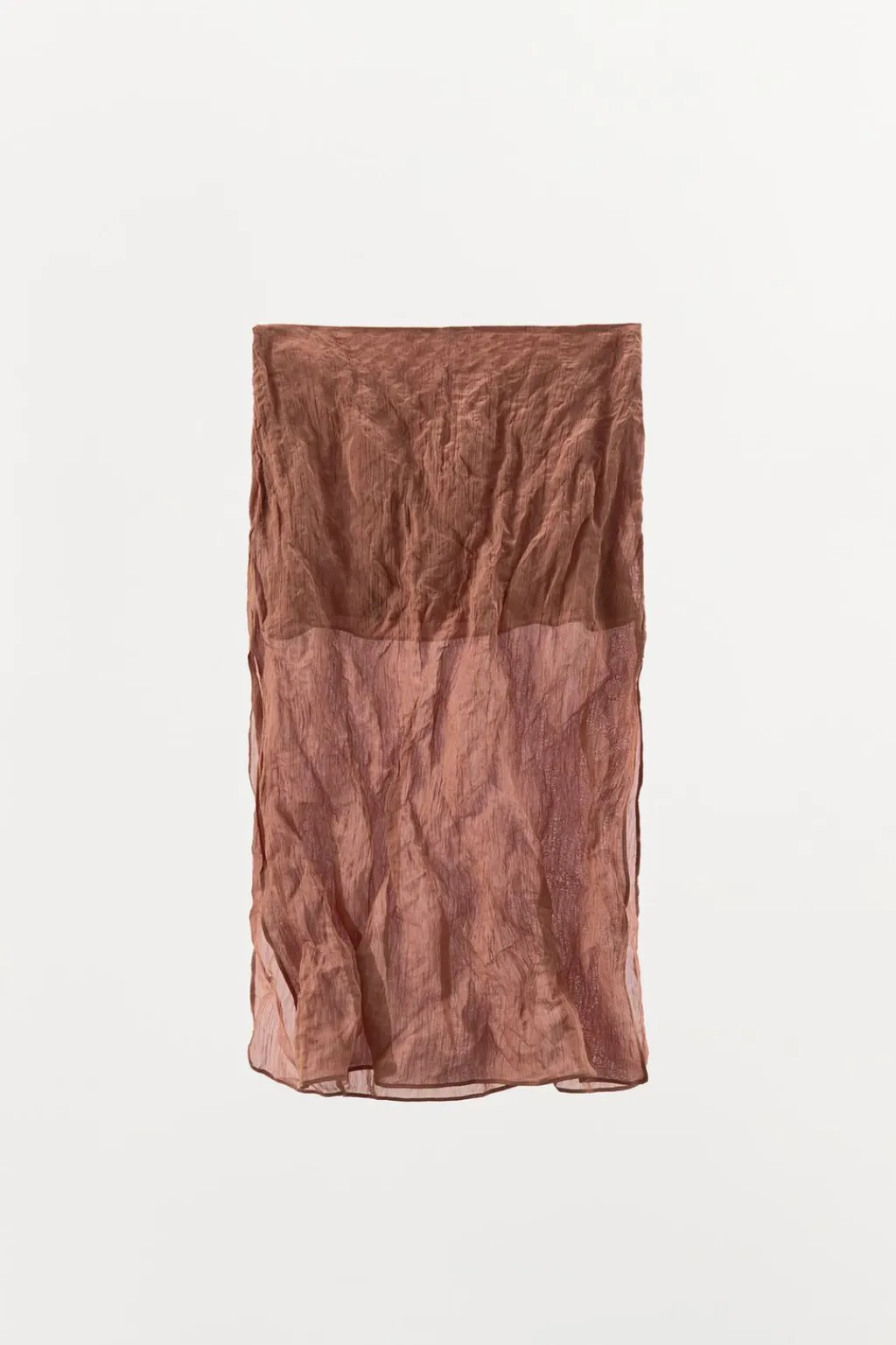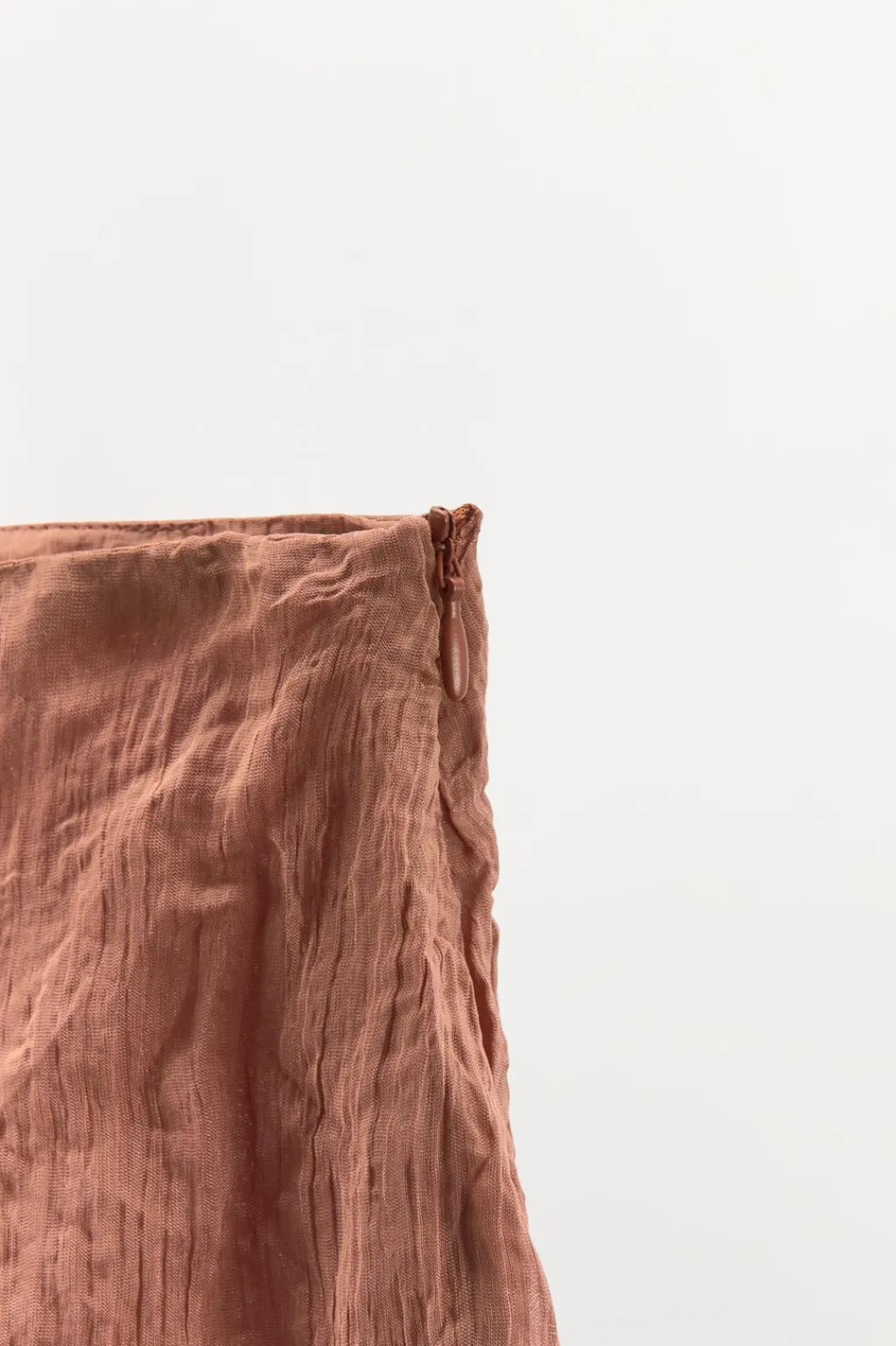 Falda midi de tiro medio confeccionada en hilatura con mezcla de viscosa. Detalle de tejido con hilo metalizado. Bajo con aberturas. Cierre lateral con cremallera oculta en costura y gancho metálico interior.