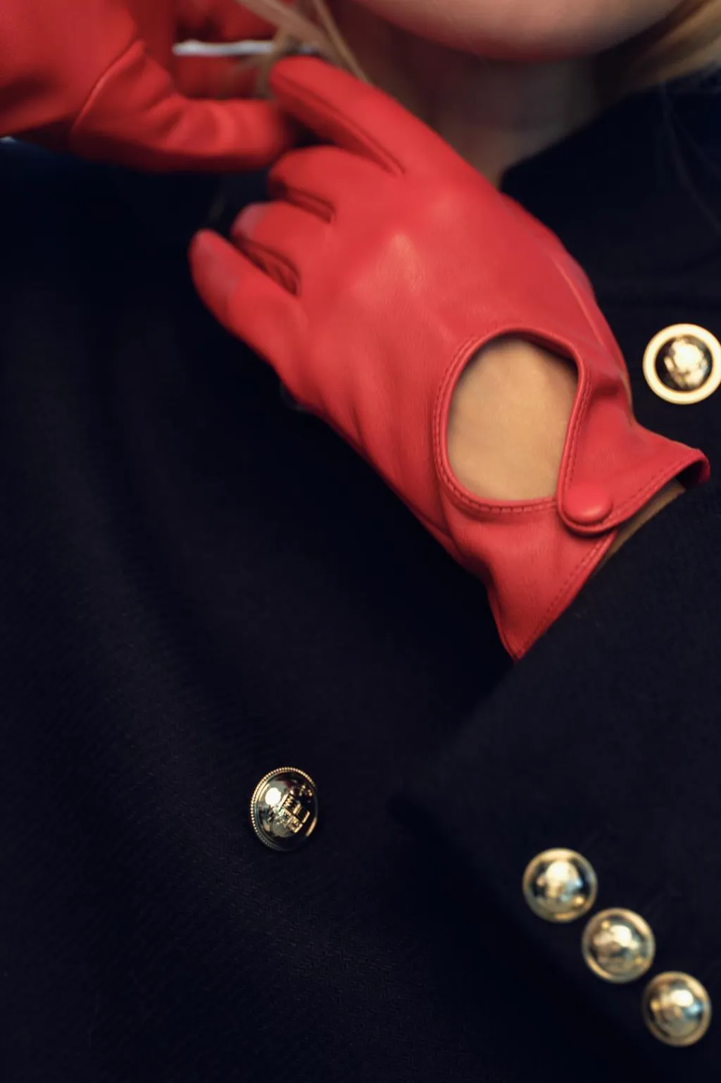 Guantes cortos realizados en piel. Cierre con botón a presión.