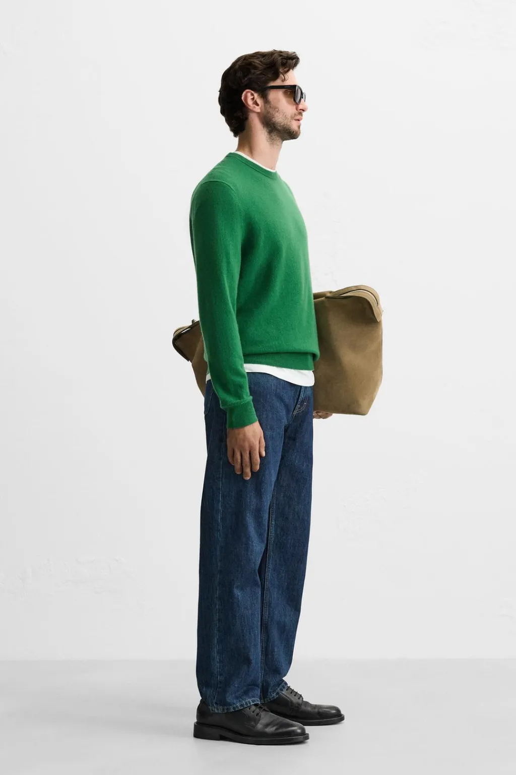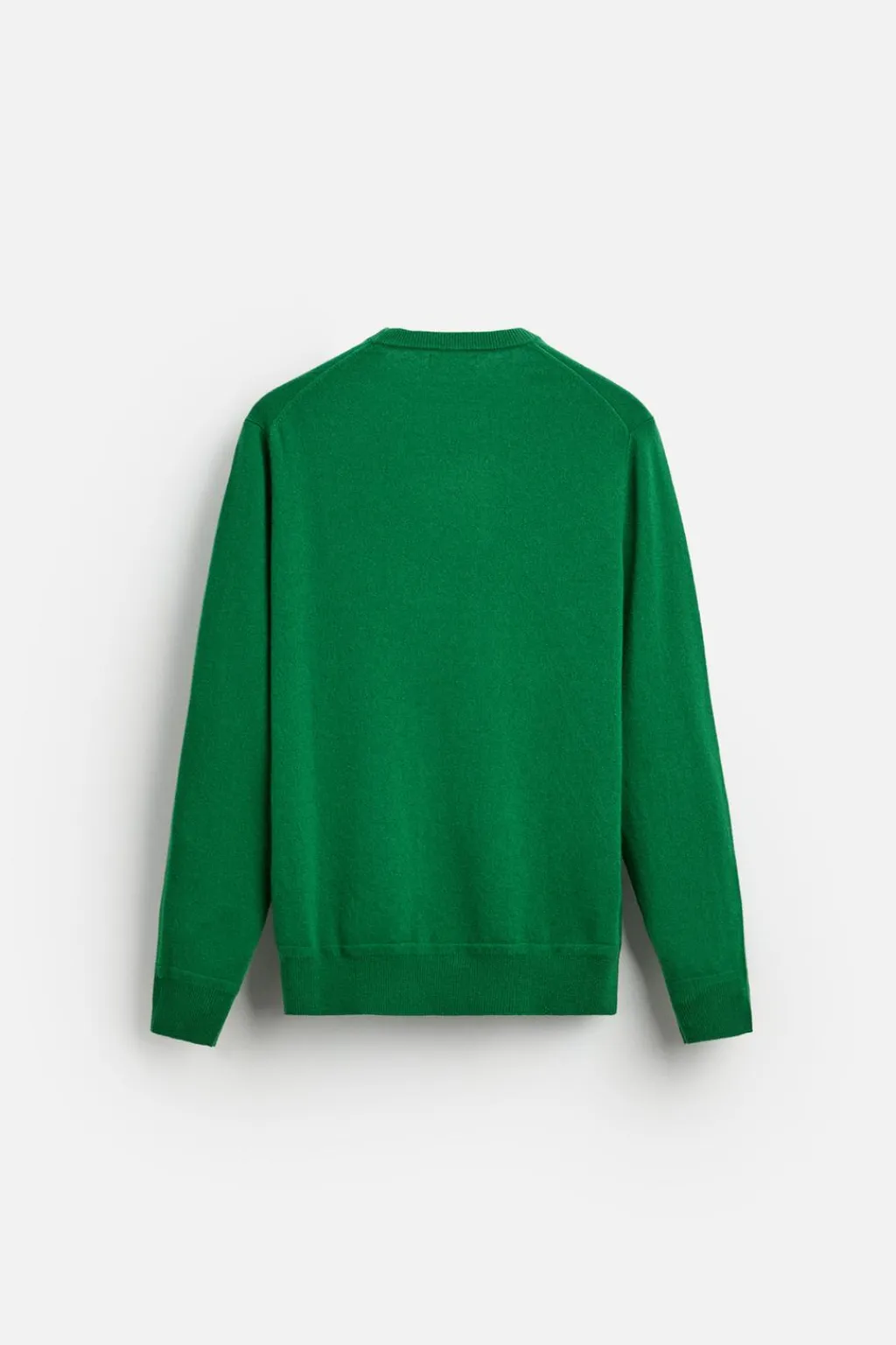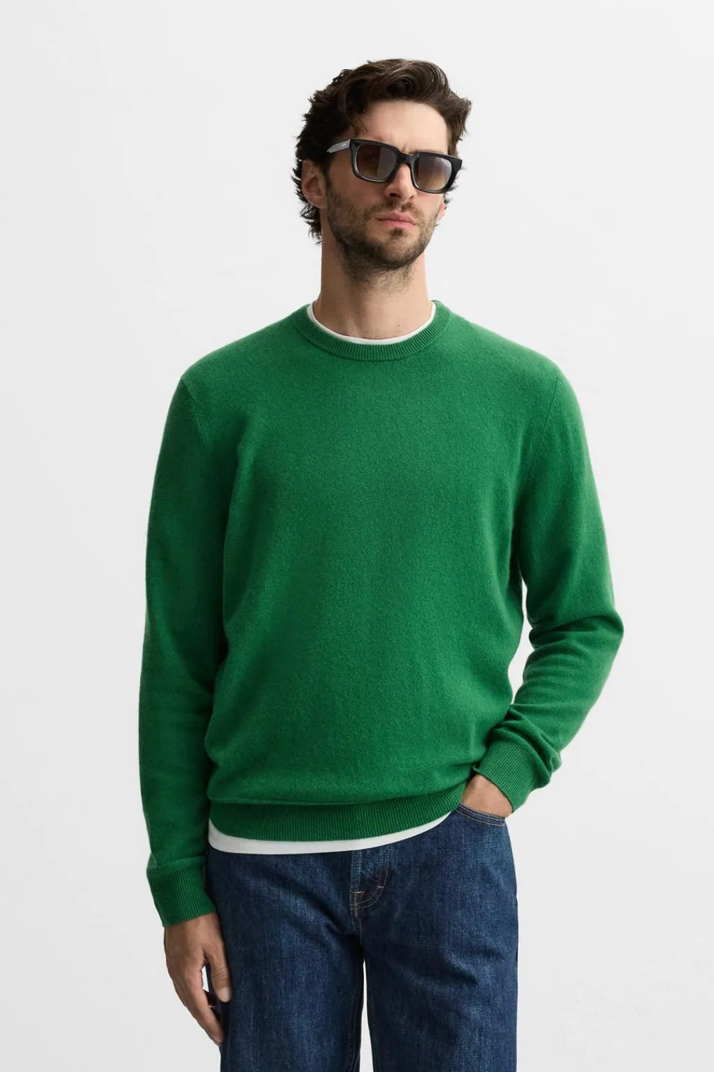 Jersey regular fit tejido en hilatura con mezcla de lana y cashmere. Cuello redondo y manga larga. Acabados en rib.