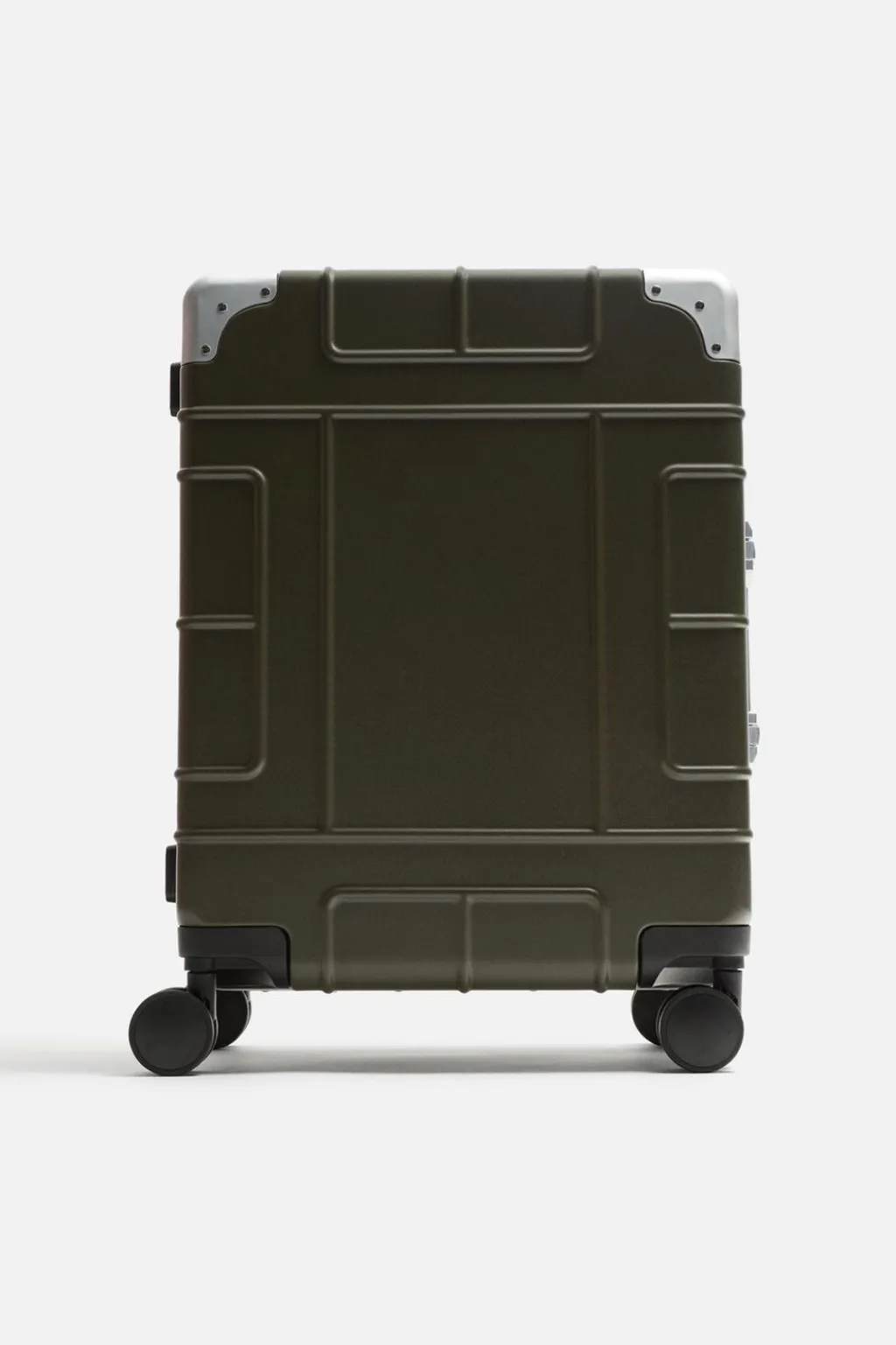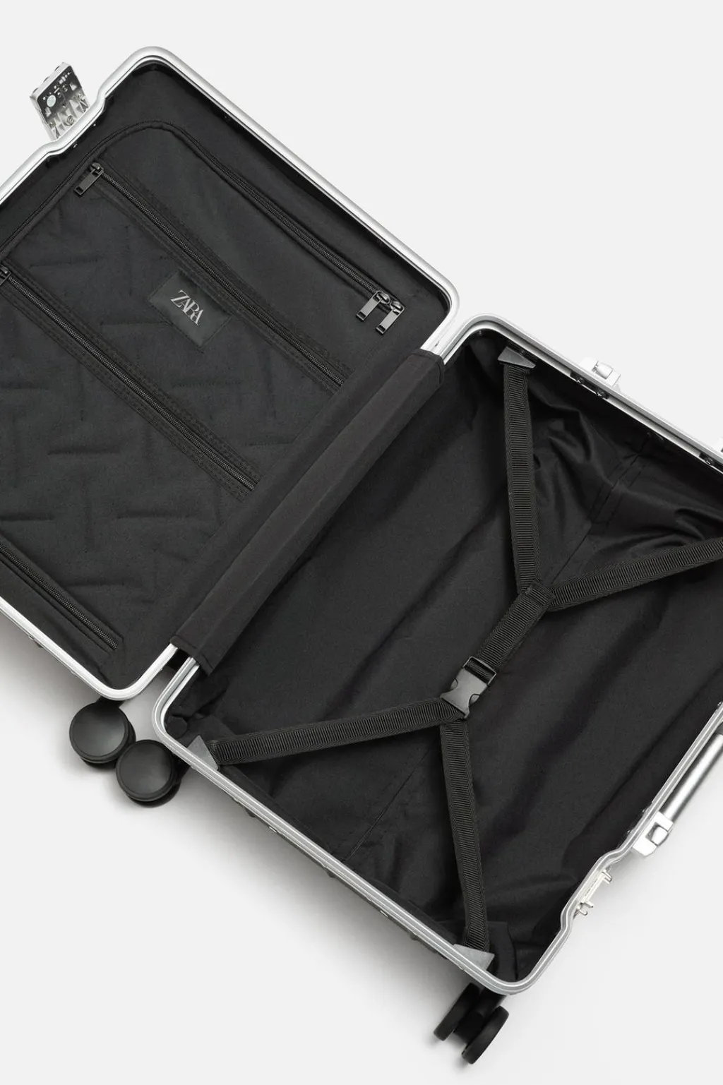 Maleta de cabina rígida. Estructura ligera con detalles en aluminio, doble cierre tipo TSA Lock y cuatro ruedas giratorias. Compartimiento principal con dos zonas y separador con tres bolsillos con cierre mediante cremallera. Forro en tejido técnico. Asa de mano telescópica.