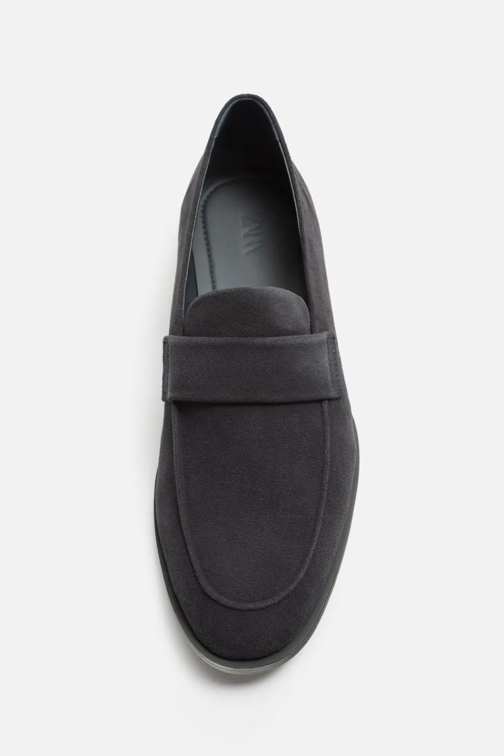 Mocasín de antifaz. Parte superior fabricada en piel con acabado serraje. Corte liso con detalle de bordón.