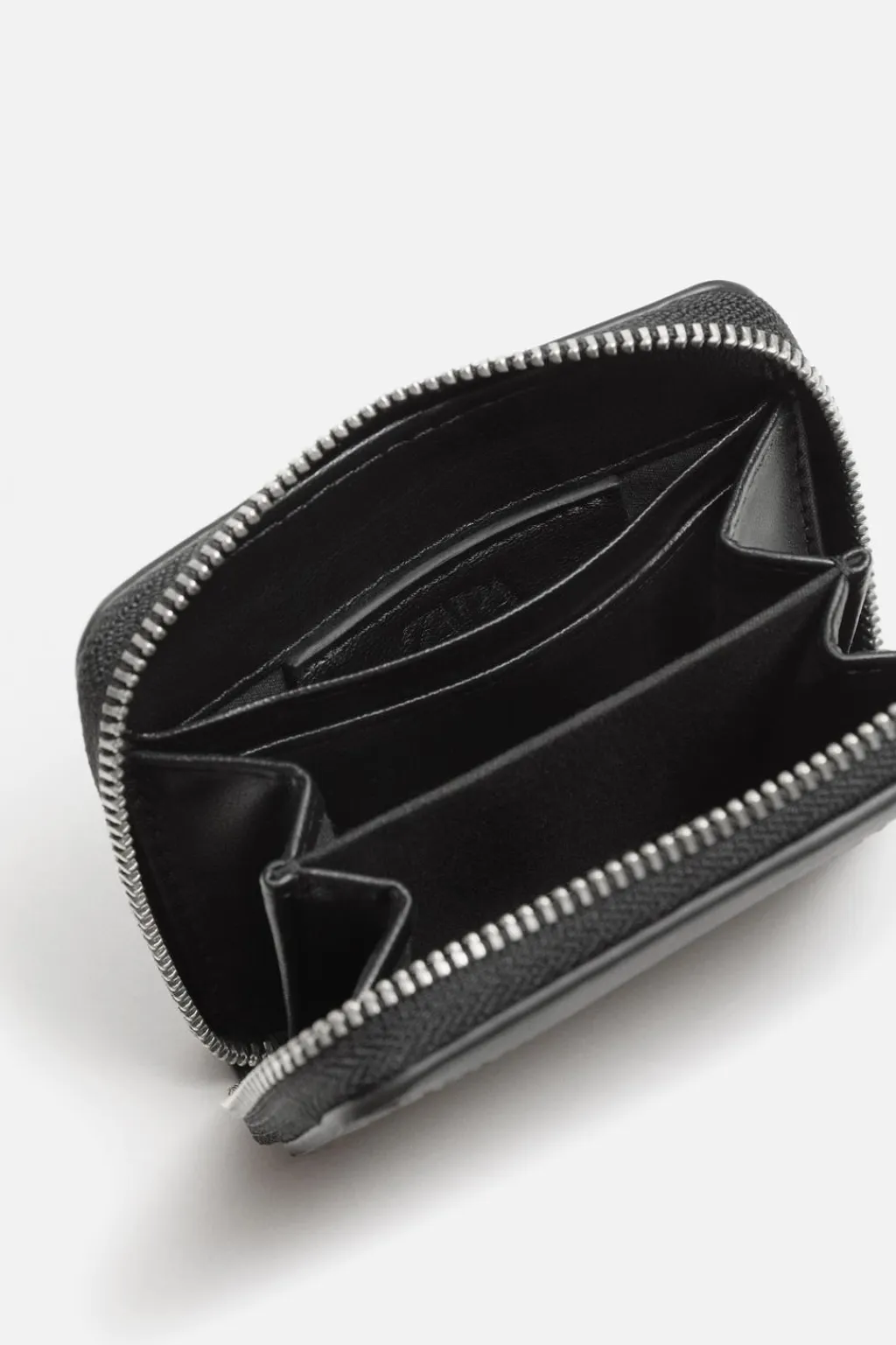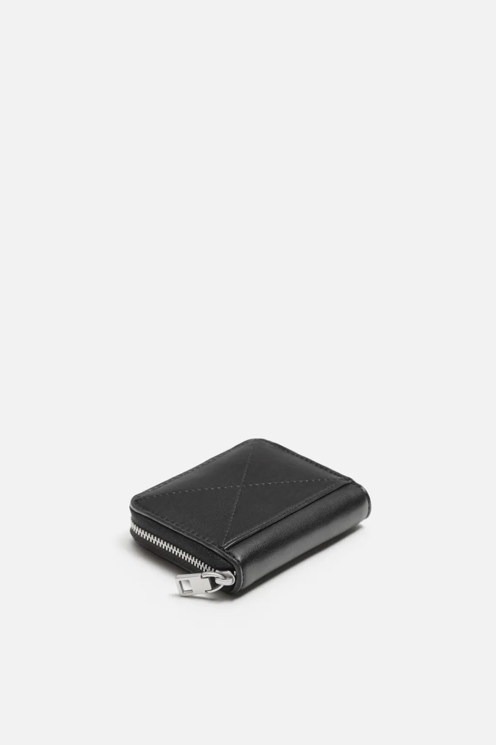 Monedero con cremallera. Detalle de pespuntes en la parte frontal. Cierre con cremallera y varias posiciones para tarjetas en el interior.