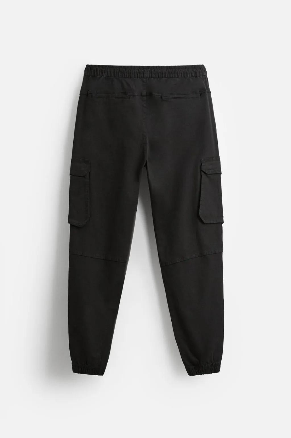 Pantalón relaxed fit. Cintura elástica ajustable con cordón. Bolsillos frontales y detalle de bolsillos traseros de vivo. Aplicación de bolsillos de plastrón con solapa en perneras. Bajo acabado en puño con elástico.