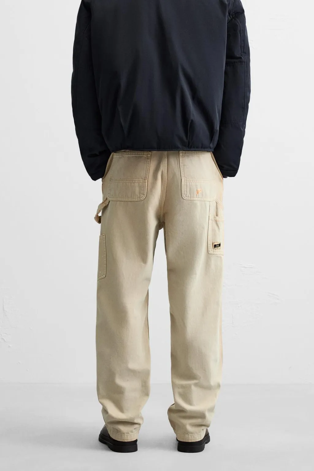 Pantalón relaxedfit. Bolsillos frontales y detalle de bolsillos traseros de plastrón. Aplicación de bolsillos plastrón y tira multifunción en pernera. Efecto lavado. Cierre frontal con cremallera y botón.