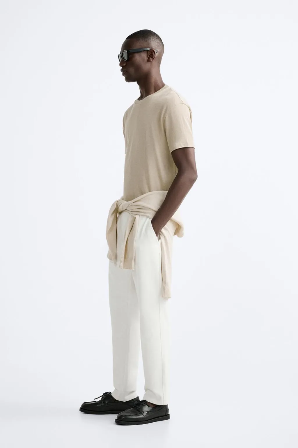 Pantalón confeccionado en tejido con mezcla de algodón. Cintura elástica ajustable con cordón. Bolsillos frontales y detalle de bolsillos de vivo en espalda.