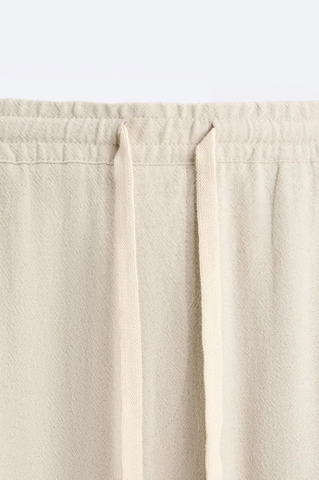 Pantalón confeccionado en tejido con mezcla de viscosa y lino. Cintura elástica ajustable con cordón. Bolsillos delanteros y detalle de bolsillo trasero de plastrón. Bajo acabado en puño con elástico.