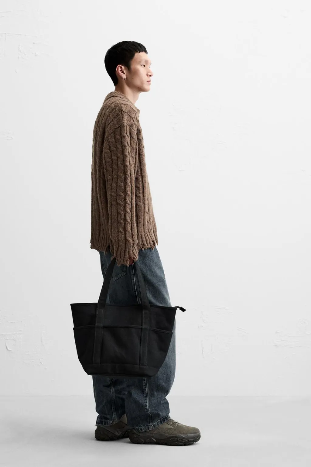 Polo relaxed fit de punto. Cuello solapa con abertura frontal. Manga larga. Efecto rotos. Acabados en rib.