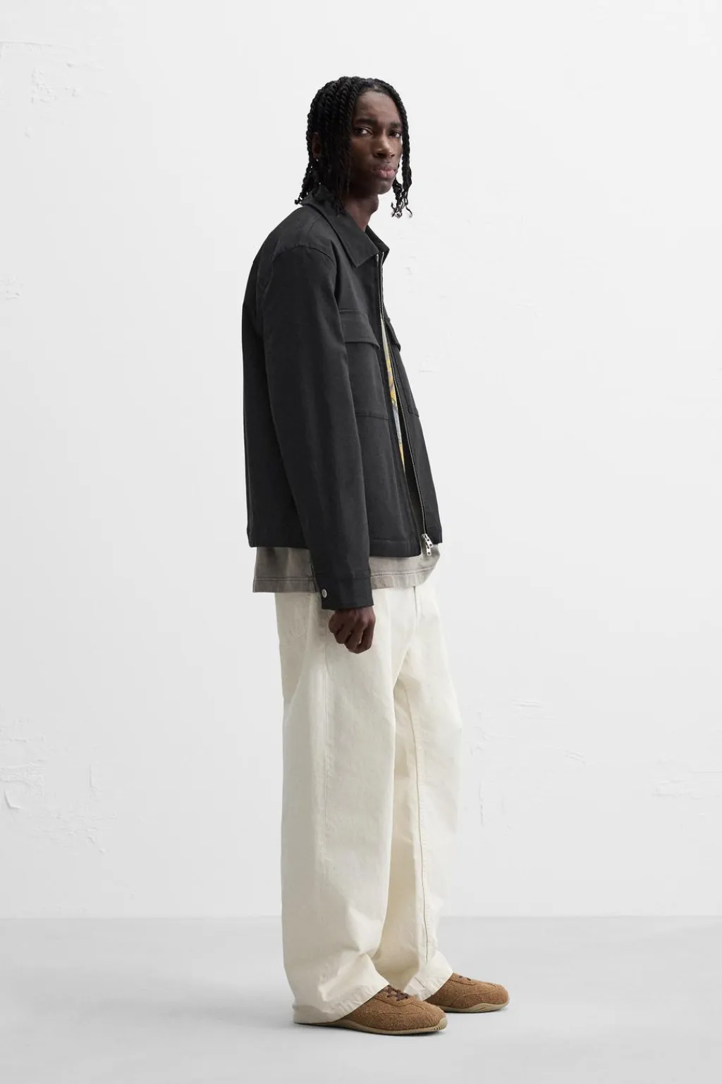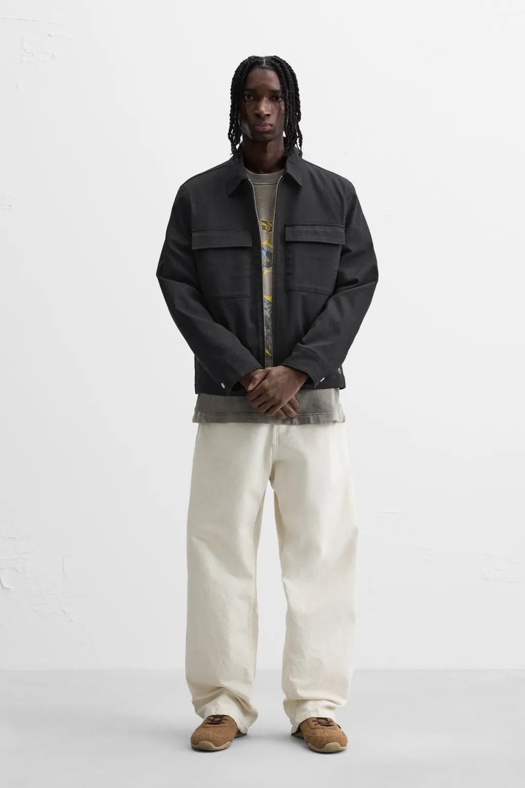 Sobrecamisa relaxed fit confeccionada en tejido de algodón ligeramente acolchado en su interior. Cuello solapa y manga larga acabada en puño con botón. Bolsillos de plastrón con solapa en pecho y de vivo en cadera. Cierre frontal con cremallera.