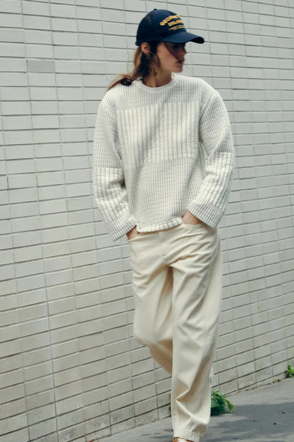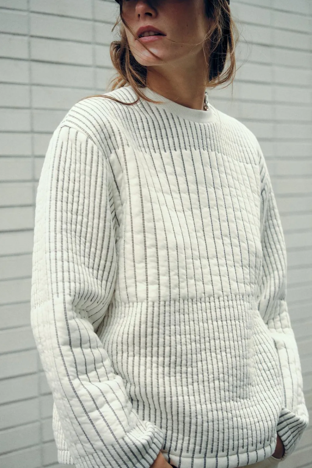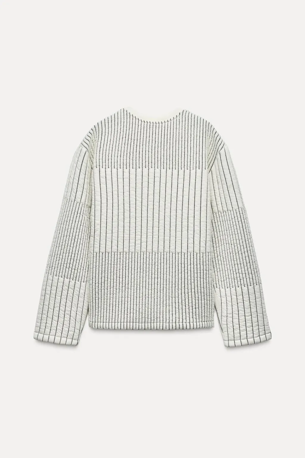 Sudadera acolchada de cuello redondo acabado en rib y manga larga.