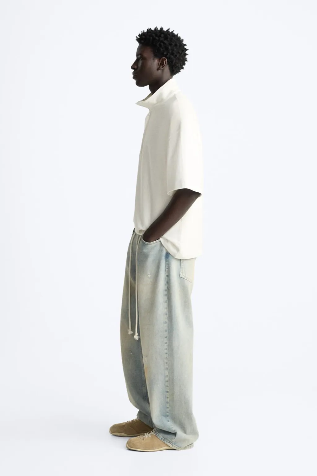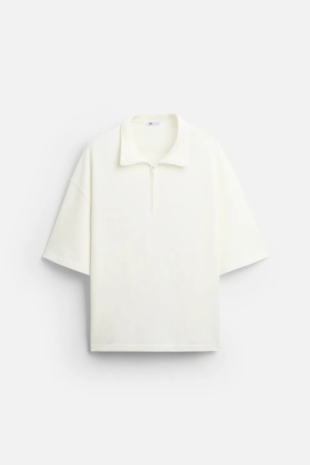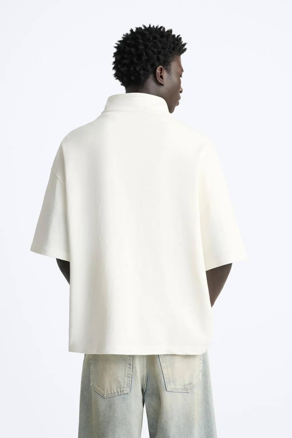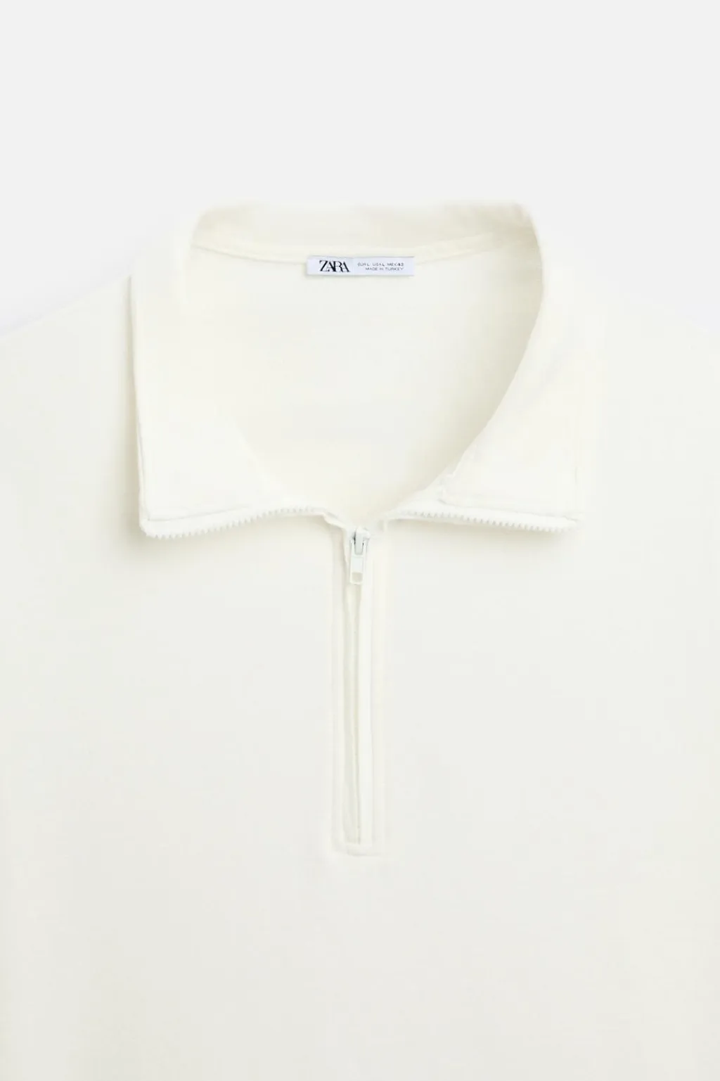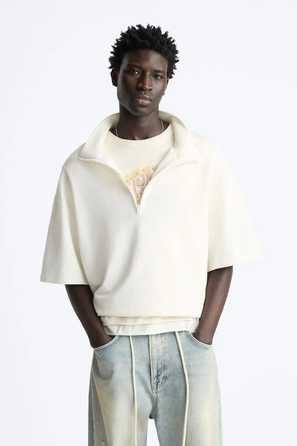 Sudadera relaxed fit. Cuello subido con cierre frontal de cremallera. Manga corta.