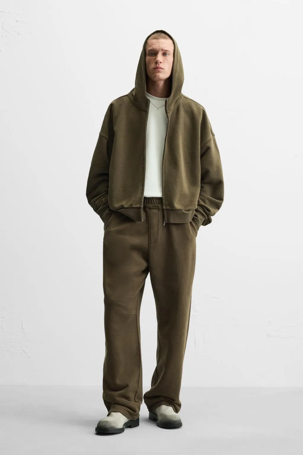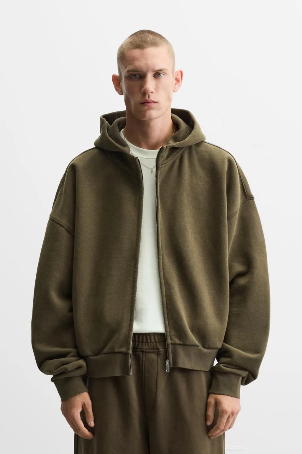 Sudadera hoodie cropped fit. Cuello con capucha y manga larga. Efecto lavado. Acabados en rib.