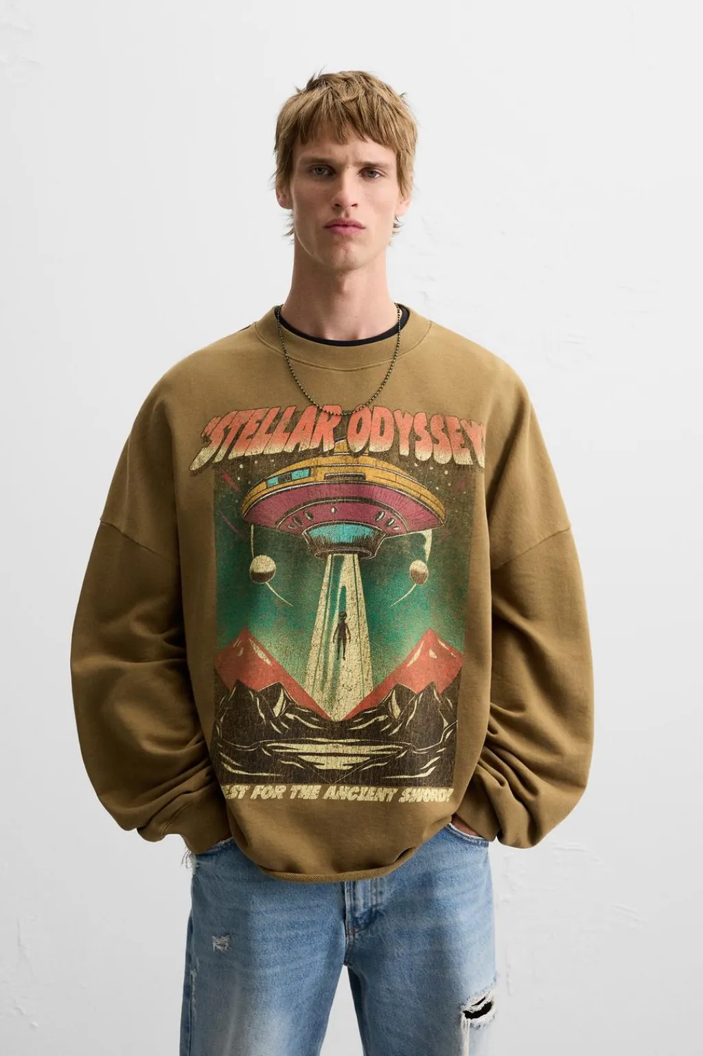 Sudadera relaxed fit confeccionada en algodón con el interior perchado. Cuello redondo y manga larga. Estampados combinados a contraste en delantero. Efecto lavado.