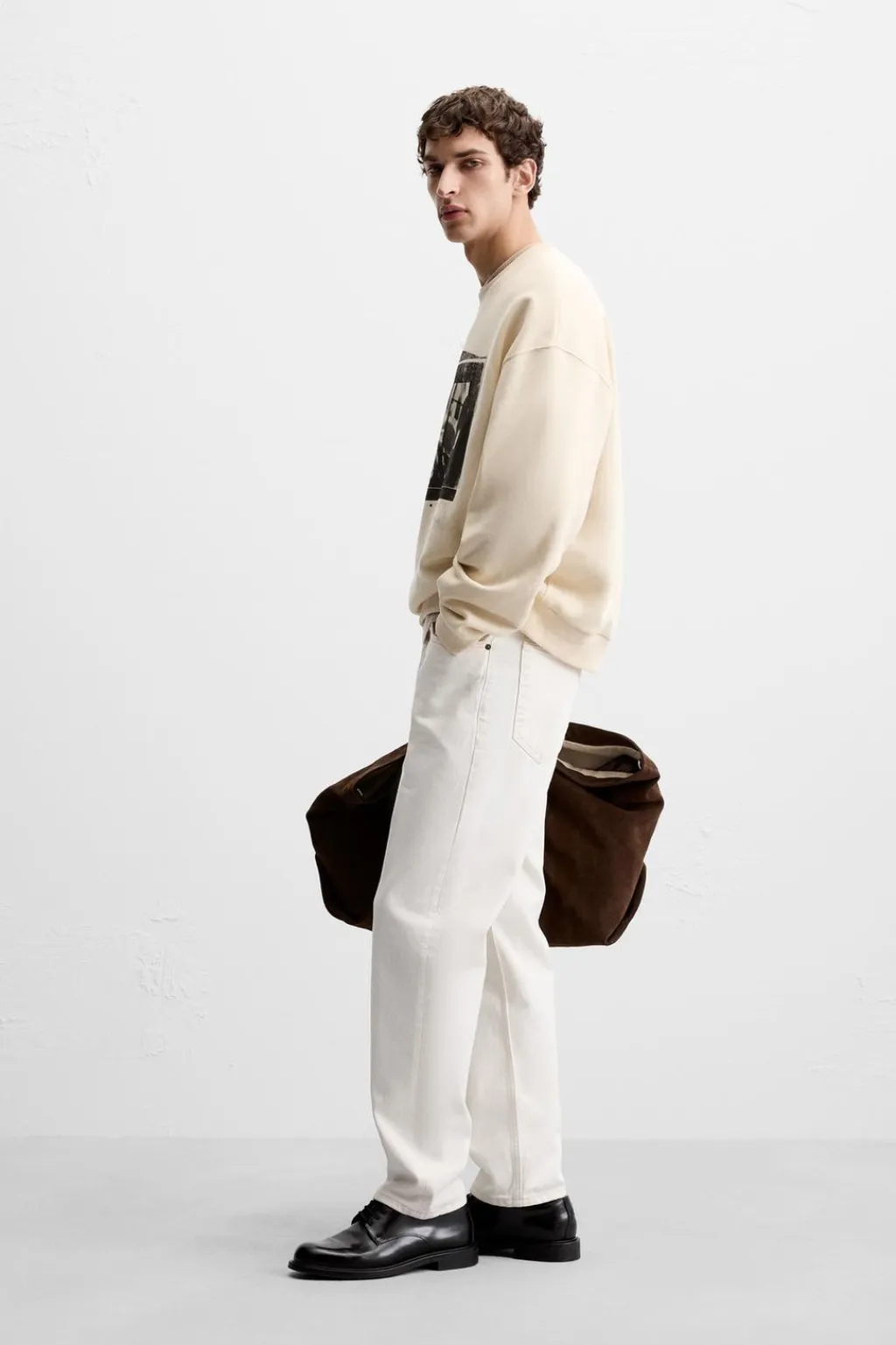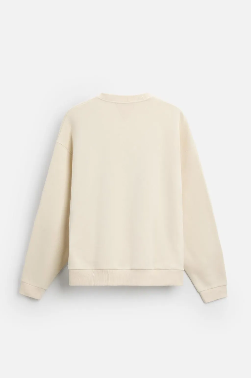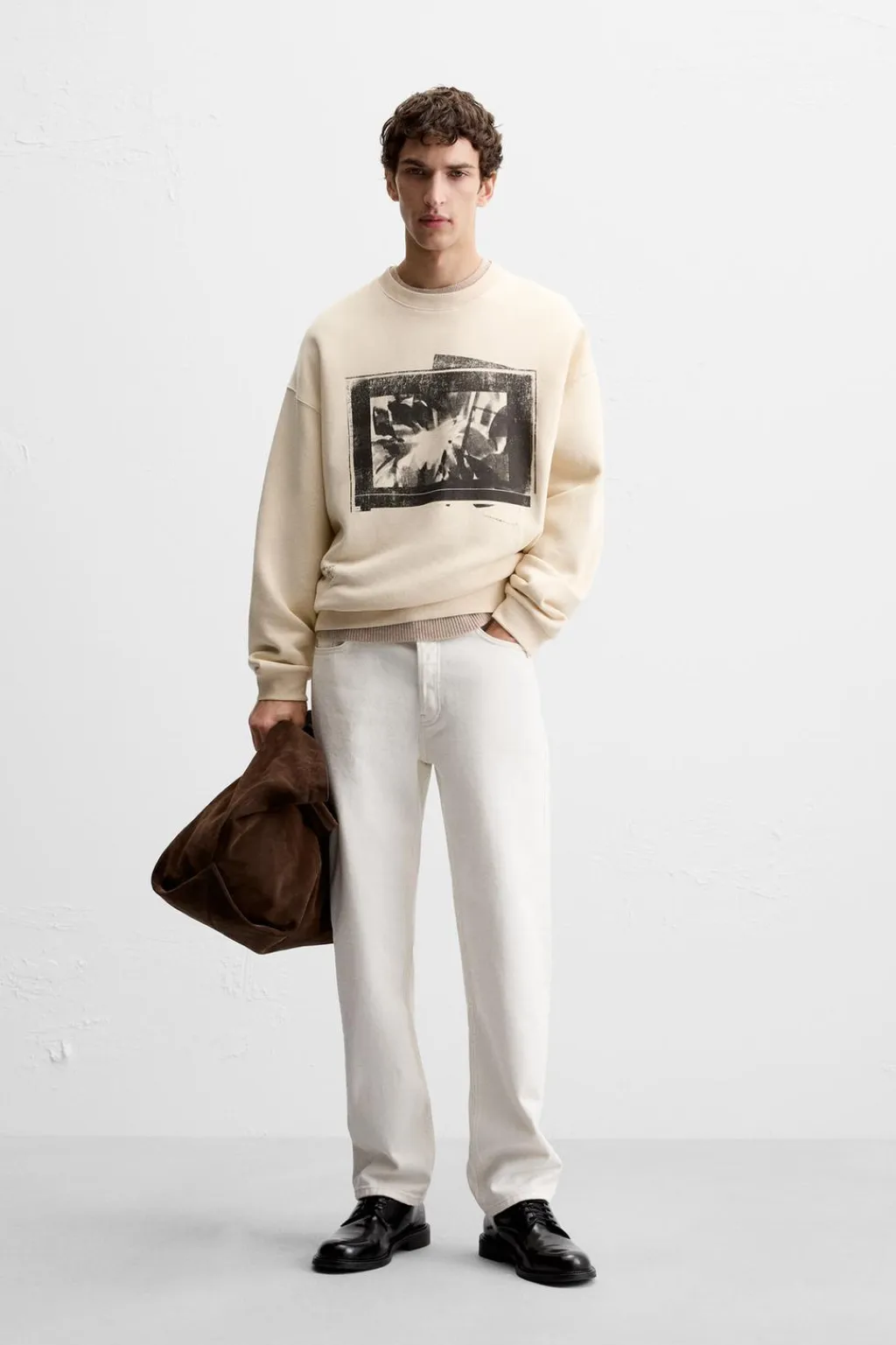 Sudadera boxy fit confeccionada en algodón con el interior perchado. Cuello redondo y manga larga. Estampado fotográfico combinado a contraste en delantero. Acabados en rib.