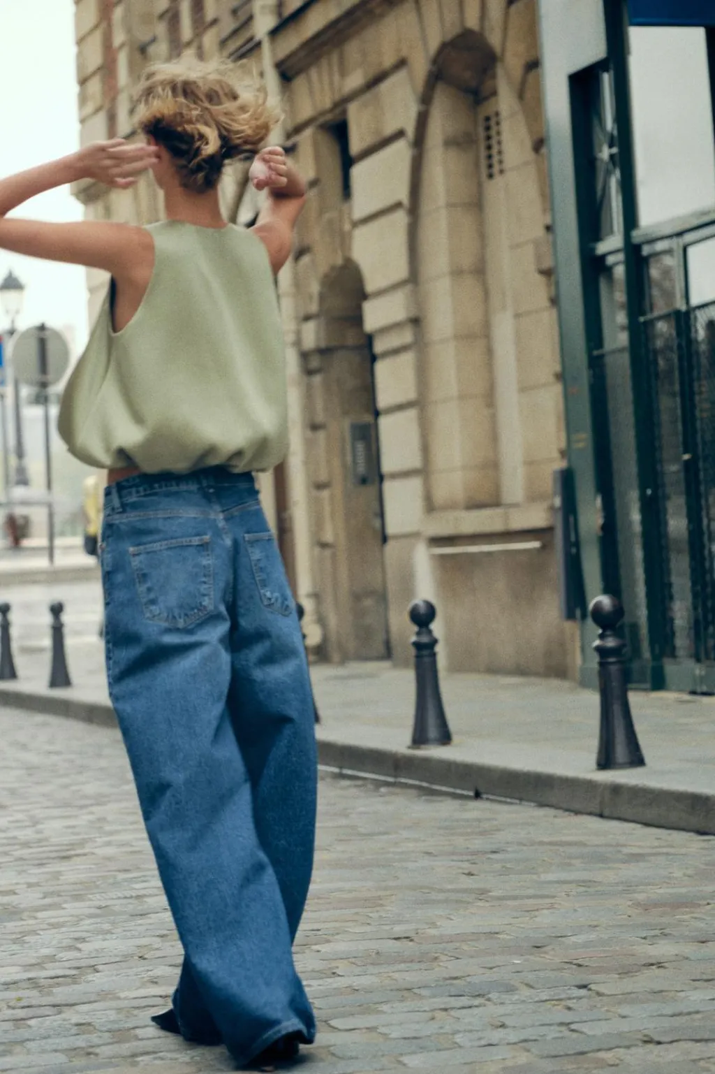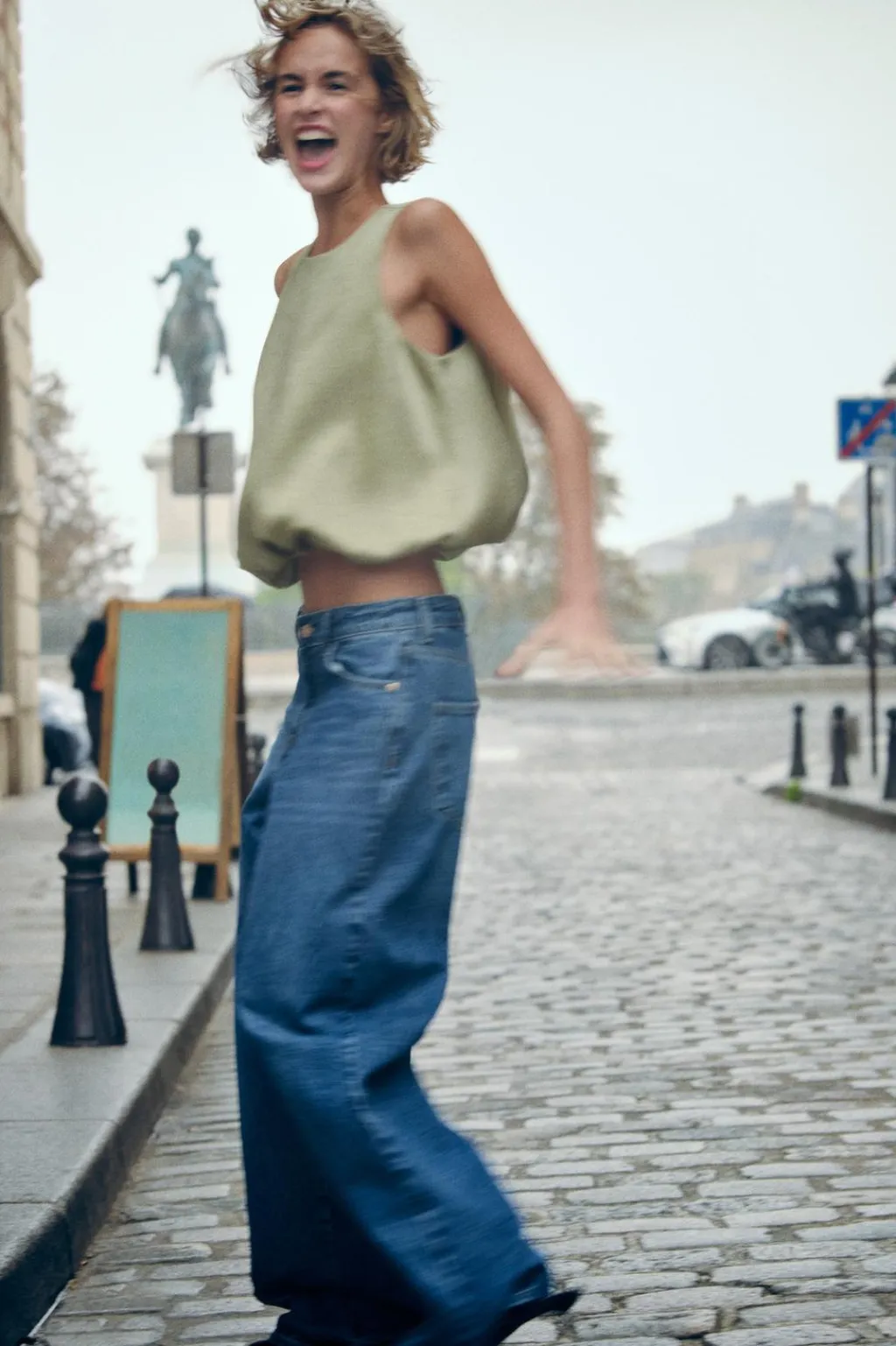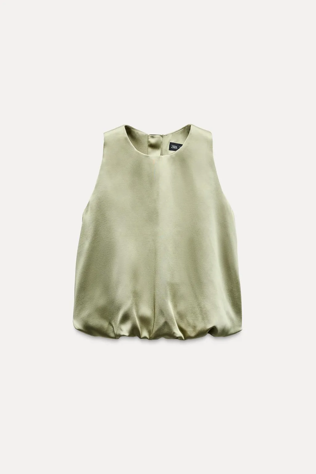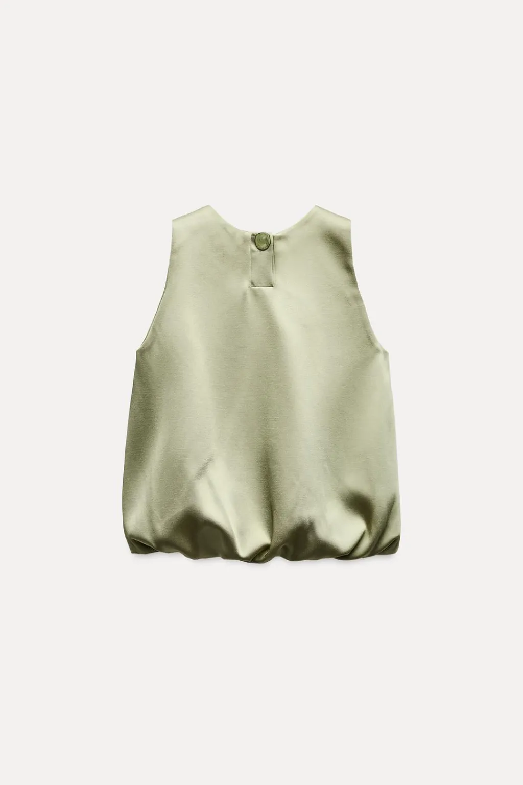 Top de cuello redondo y manga sisa. Bajo con acabado abullonado y elástico interior.