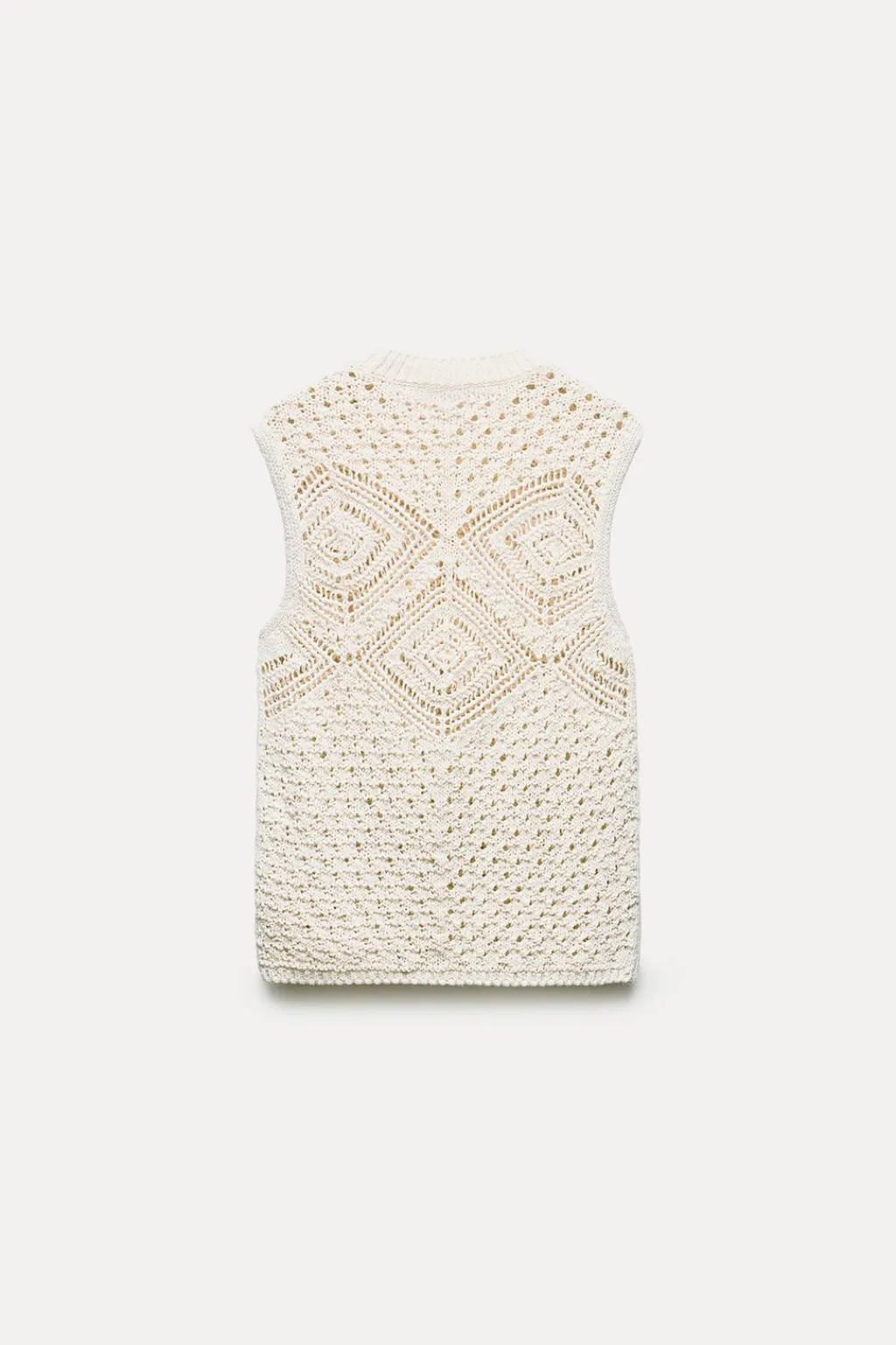 Top de cuello redondo y manga sisa. Tejido en punto con aberturas.