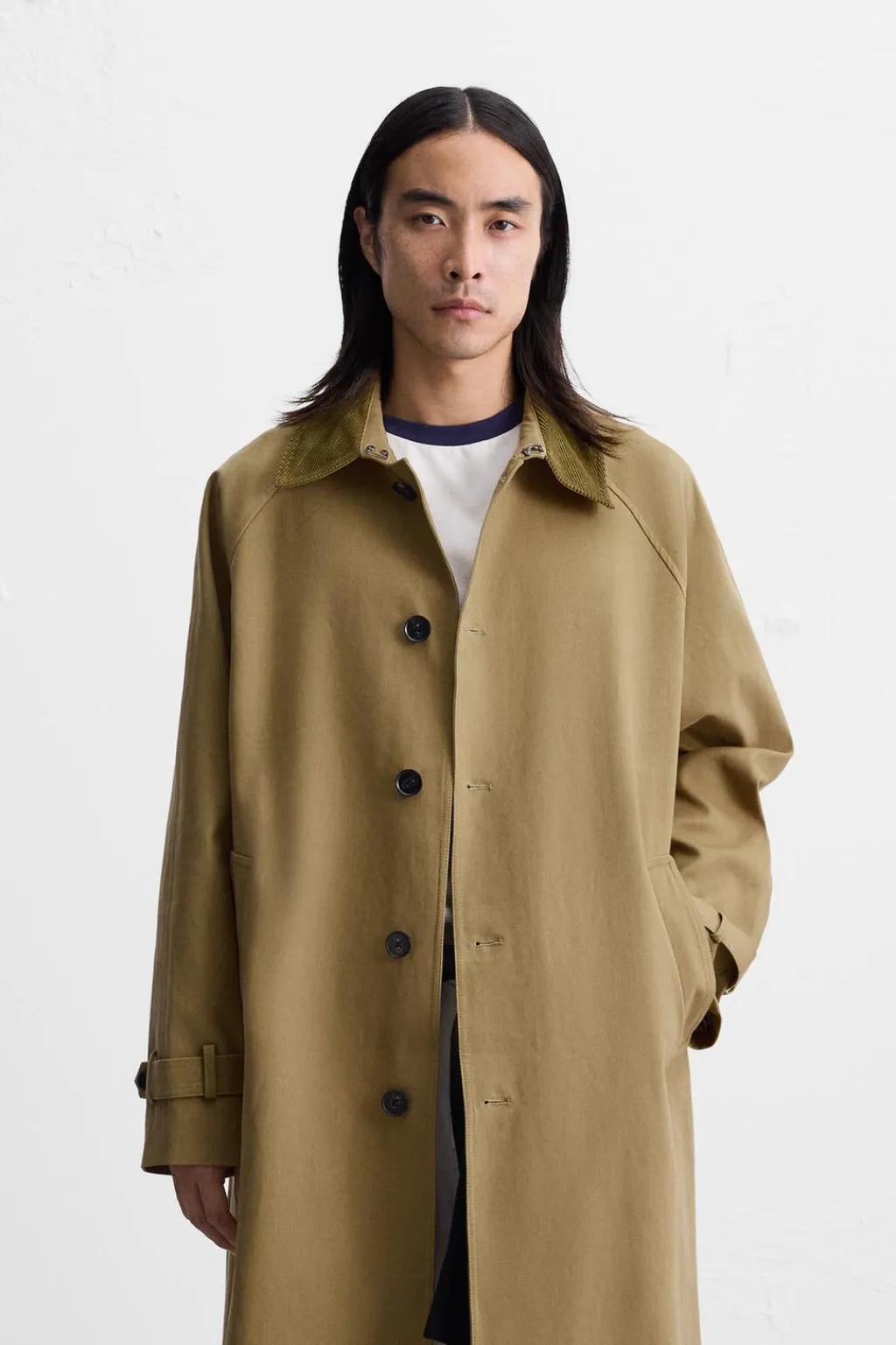 Trench relaxed fit confeccionado en tejido de algodón con estructura diagonal. Cuello solapa y manga larga acabada en puño ajustable con trabilla. Bolsillos de vivo en cadera y detalle de bolsillo interior. Bajo con abertura en centro espalda. Efecto lavado. Cierre frontal de botonadura.