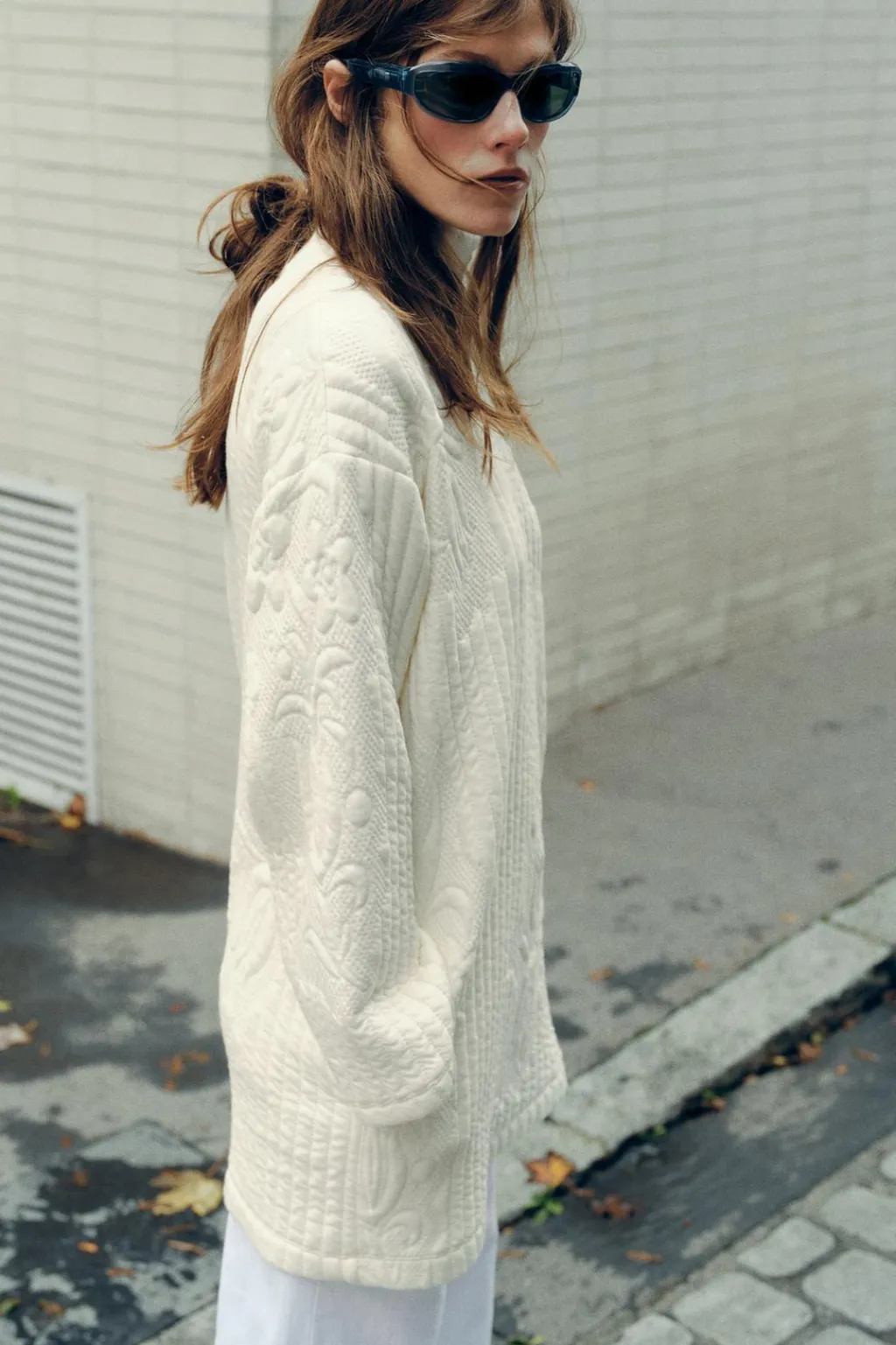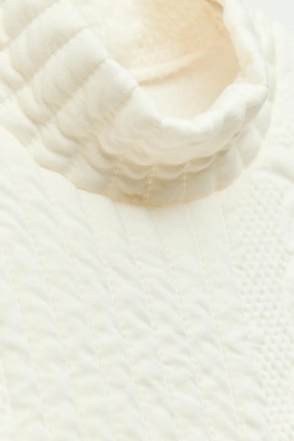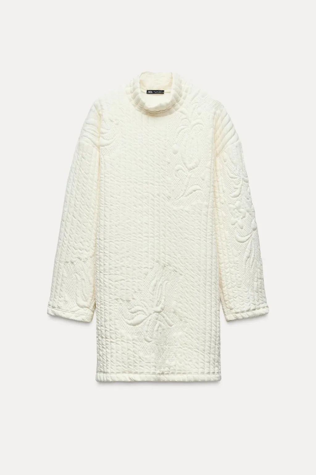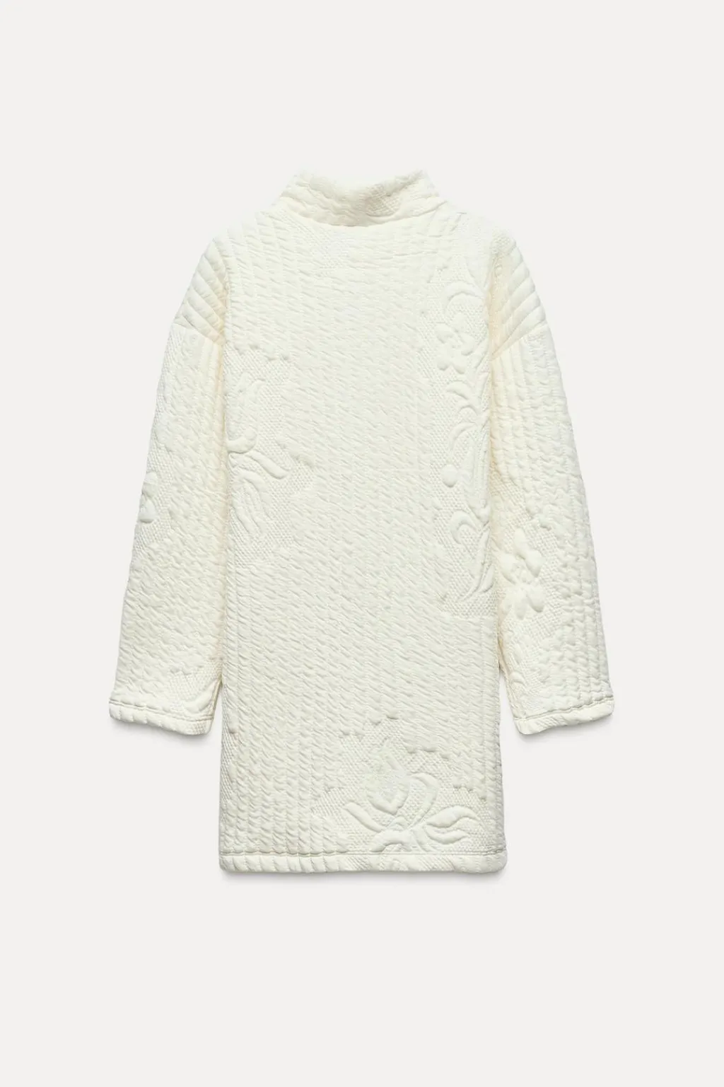Vestido corto acolchado de cuello subido y manga larga.