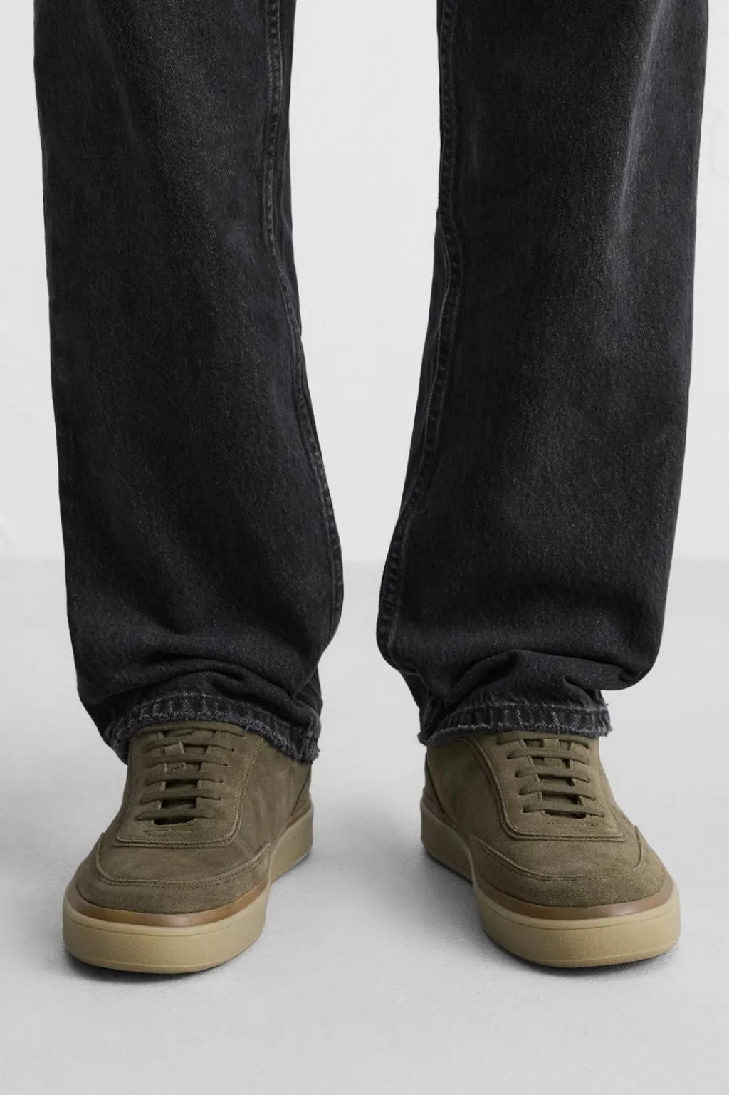 Zapatilla deportiva. Parte superior fabricada en piel con acabado serraje. Cordonera con siete pasados. Suela a contraste.