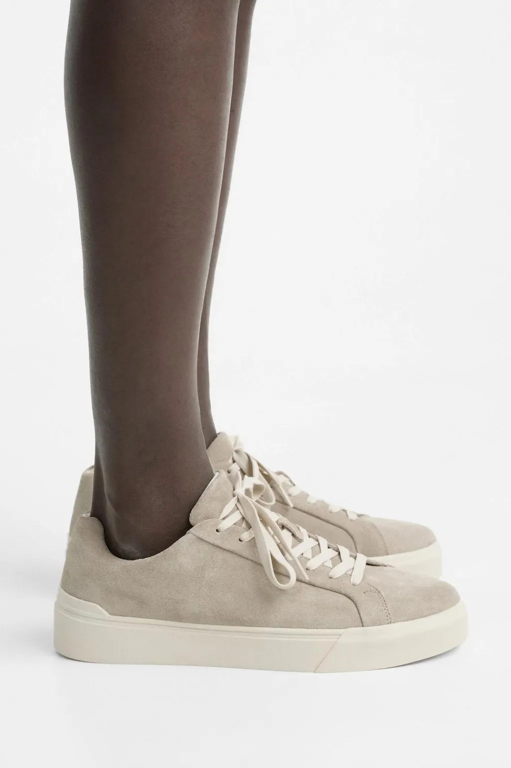 Zapatilla deportiva. Parte superior fabricado en piel con acabado serraje. Cordonera con siete pasados. Piso con volumen.