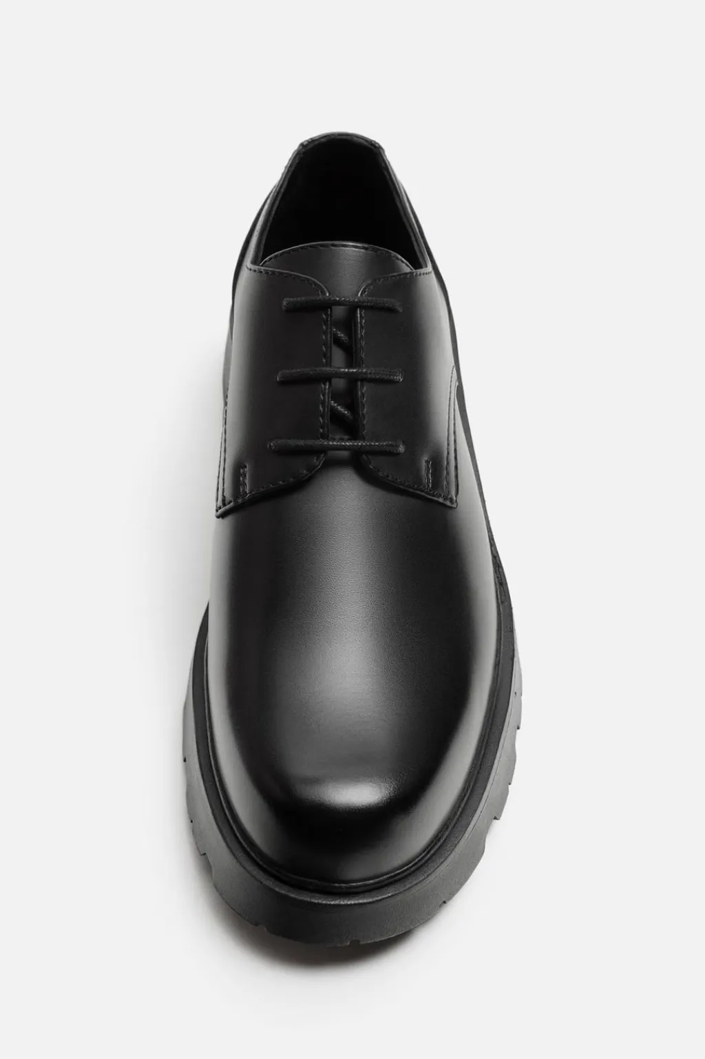 Zapato tipo derby. Corte liso. Horma redonda. Piso con volumen y suela dentada.