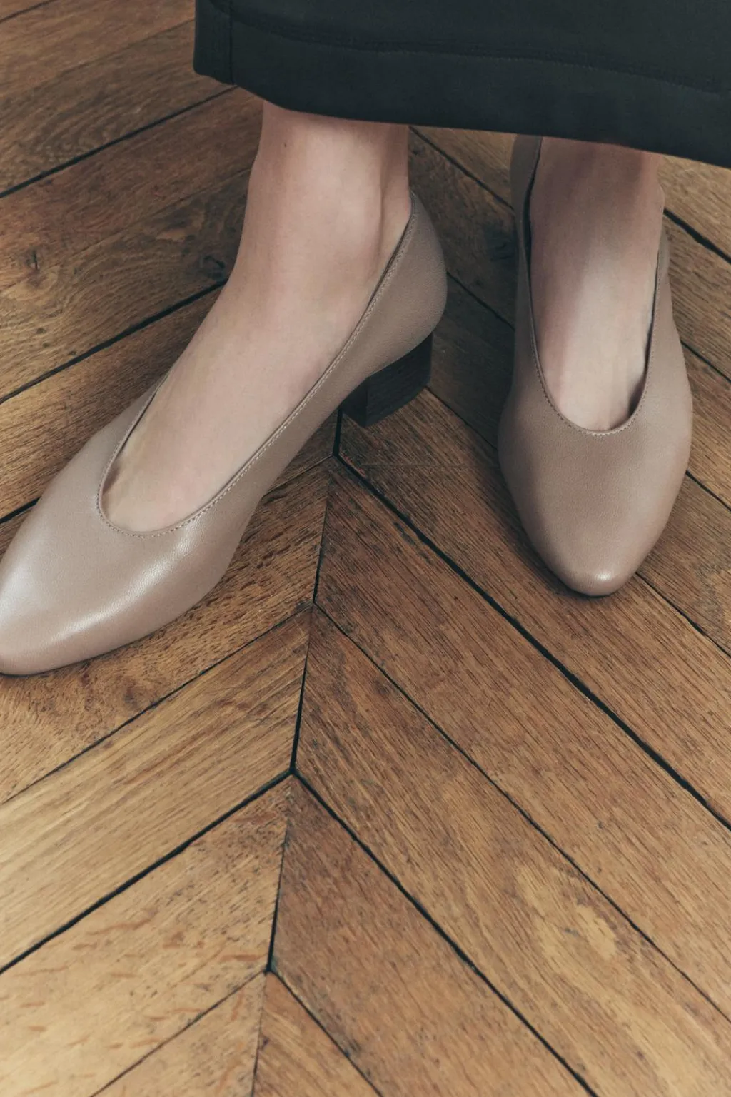 Zapato tacón ancho en piel. Acabado en punta.