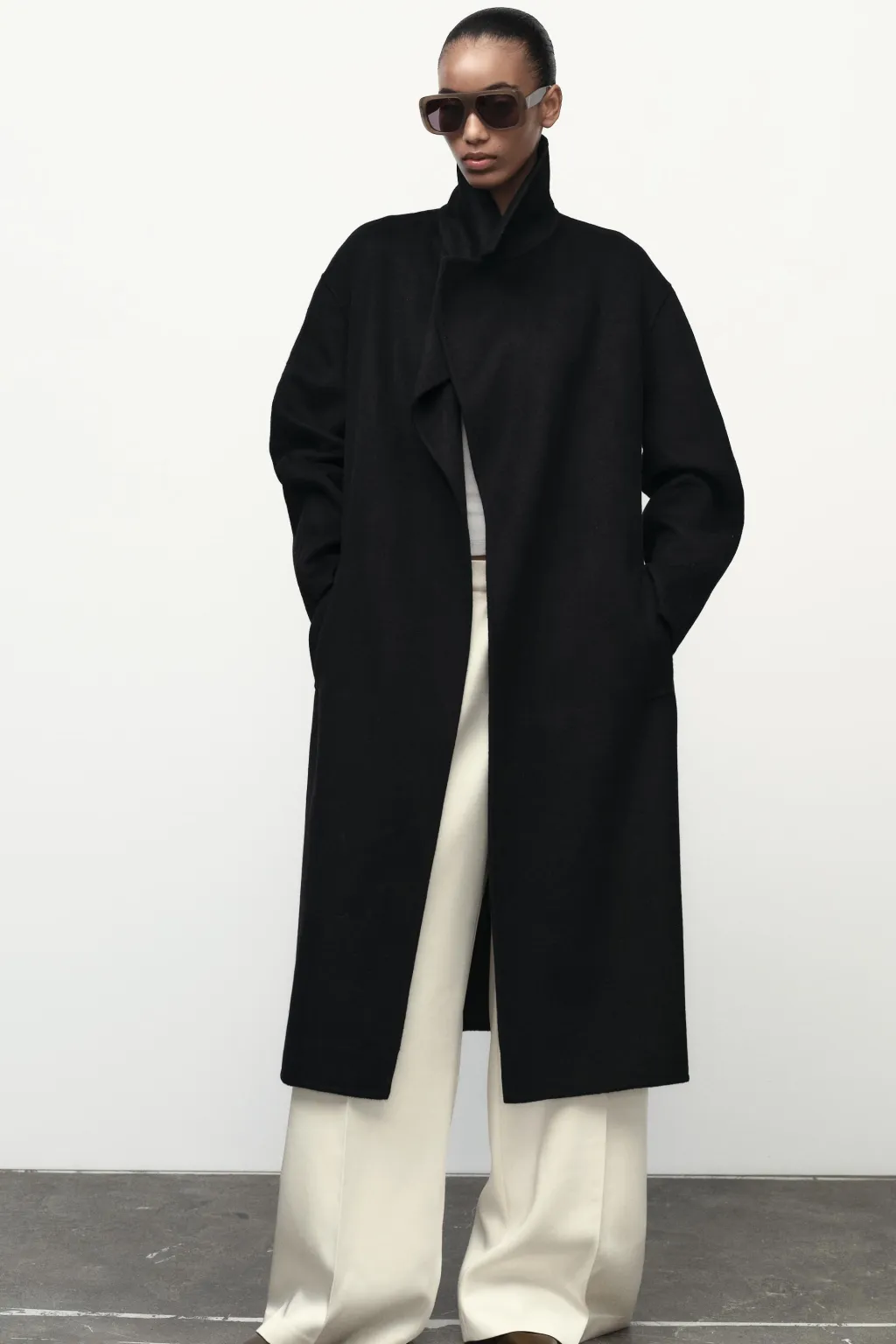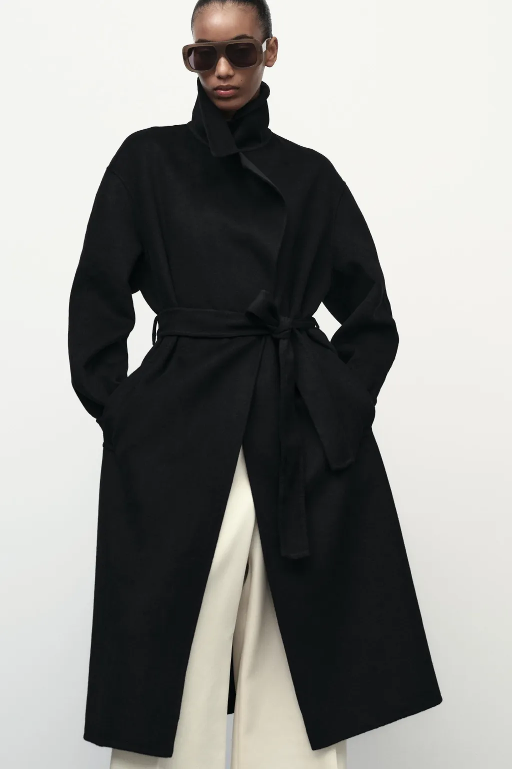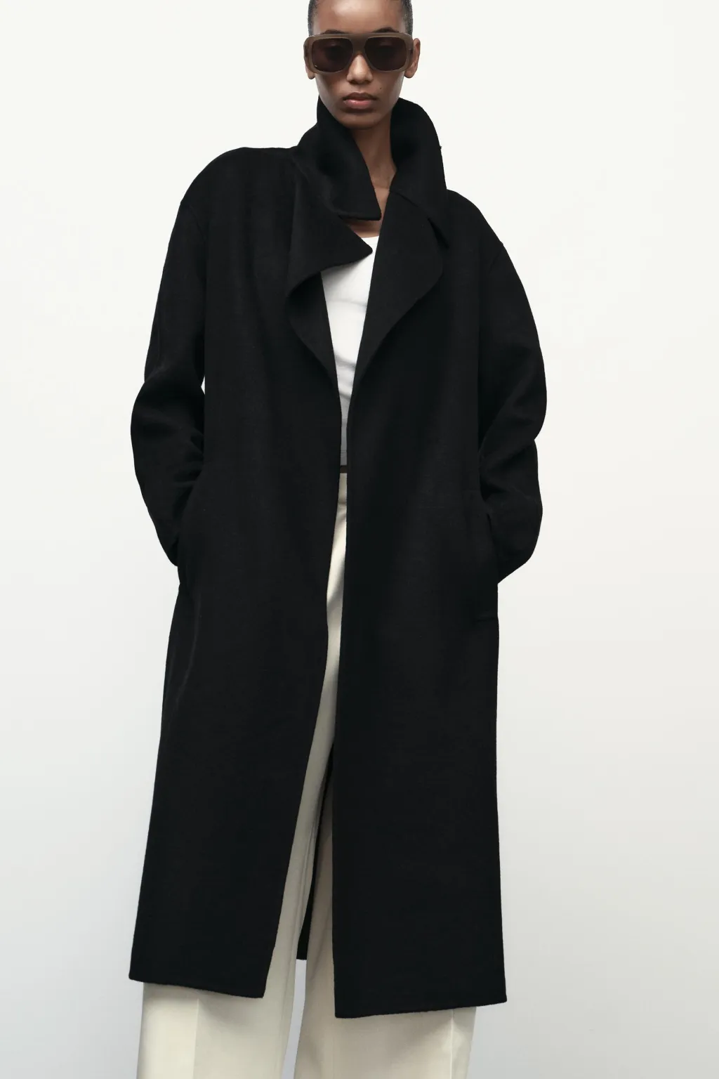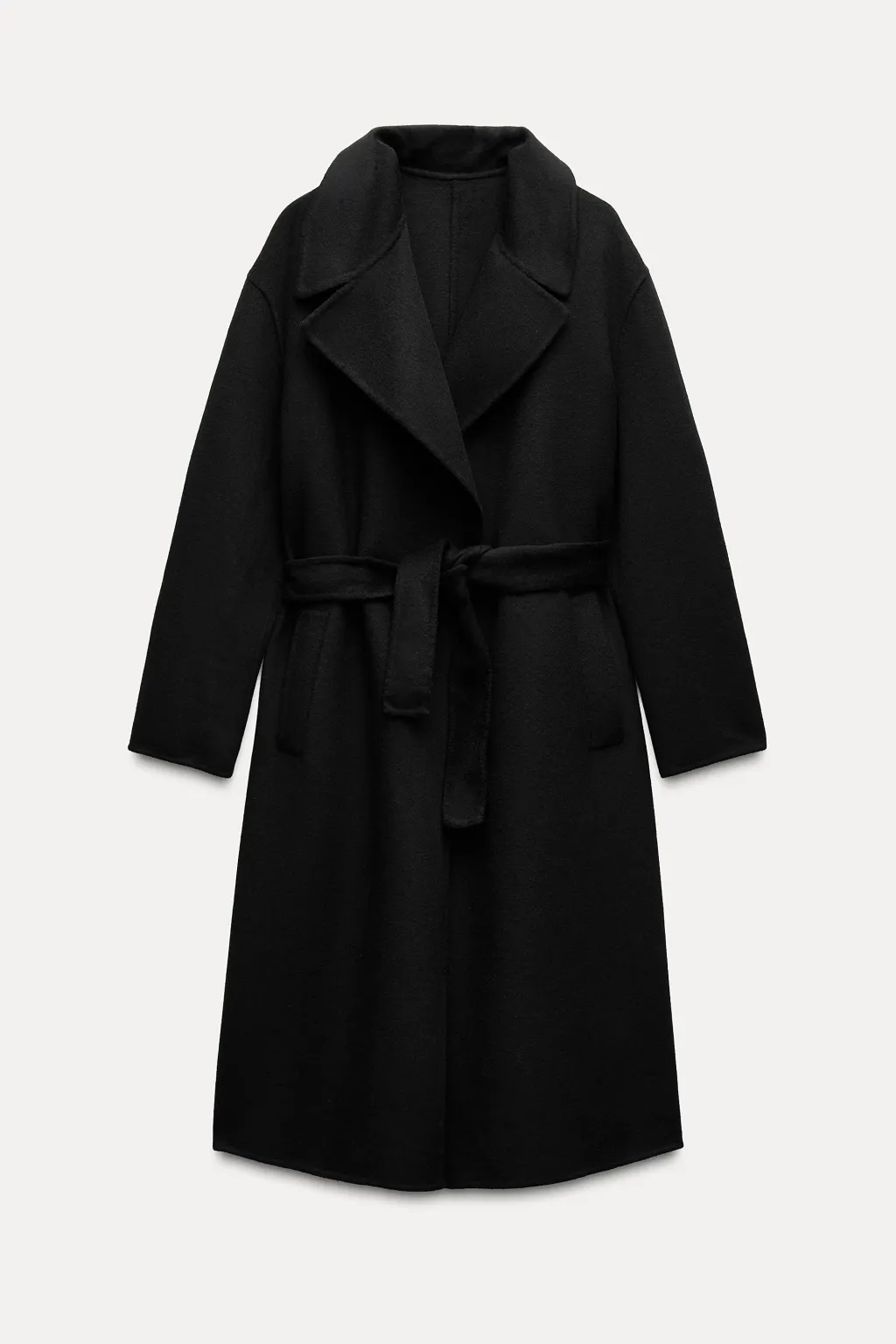 Abrigo confeccionado con lana. Cuello solapa y manga larga. Bolsillos delanteros de vivo. Cierre con cinturón.
