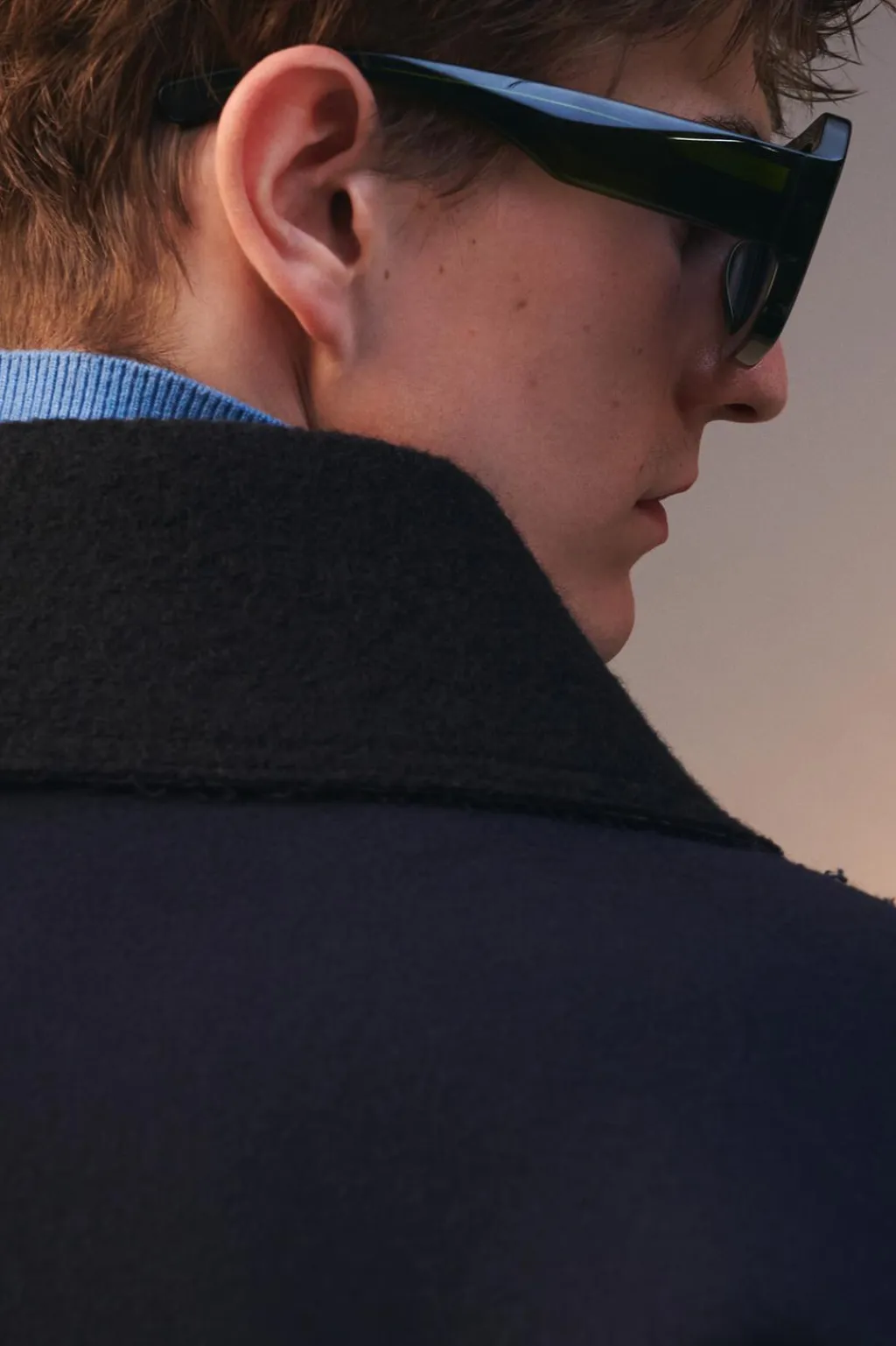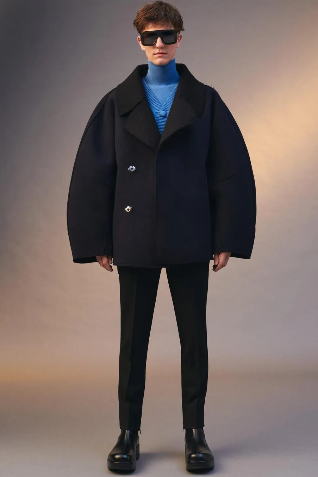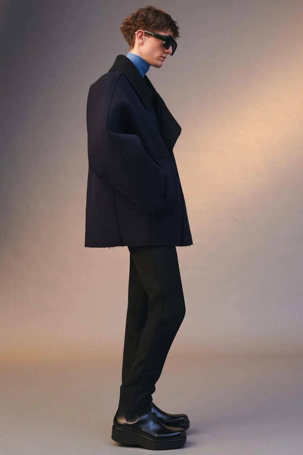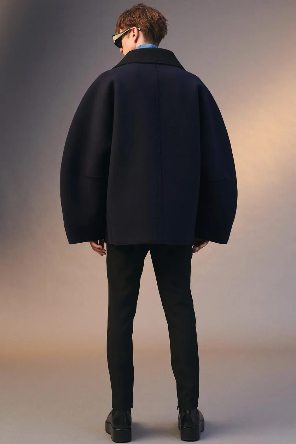 Abrigo relaxed fitconfeccionado en tejido con mezcla de lana. Cuello con solapas de muesca y manga larga ancha. Bolsillos de vivo en cadera y detalle de bolsillo interior. Acabados irregulares. Cierre frontal de botonadura cruzada oculta.