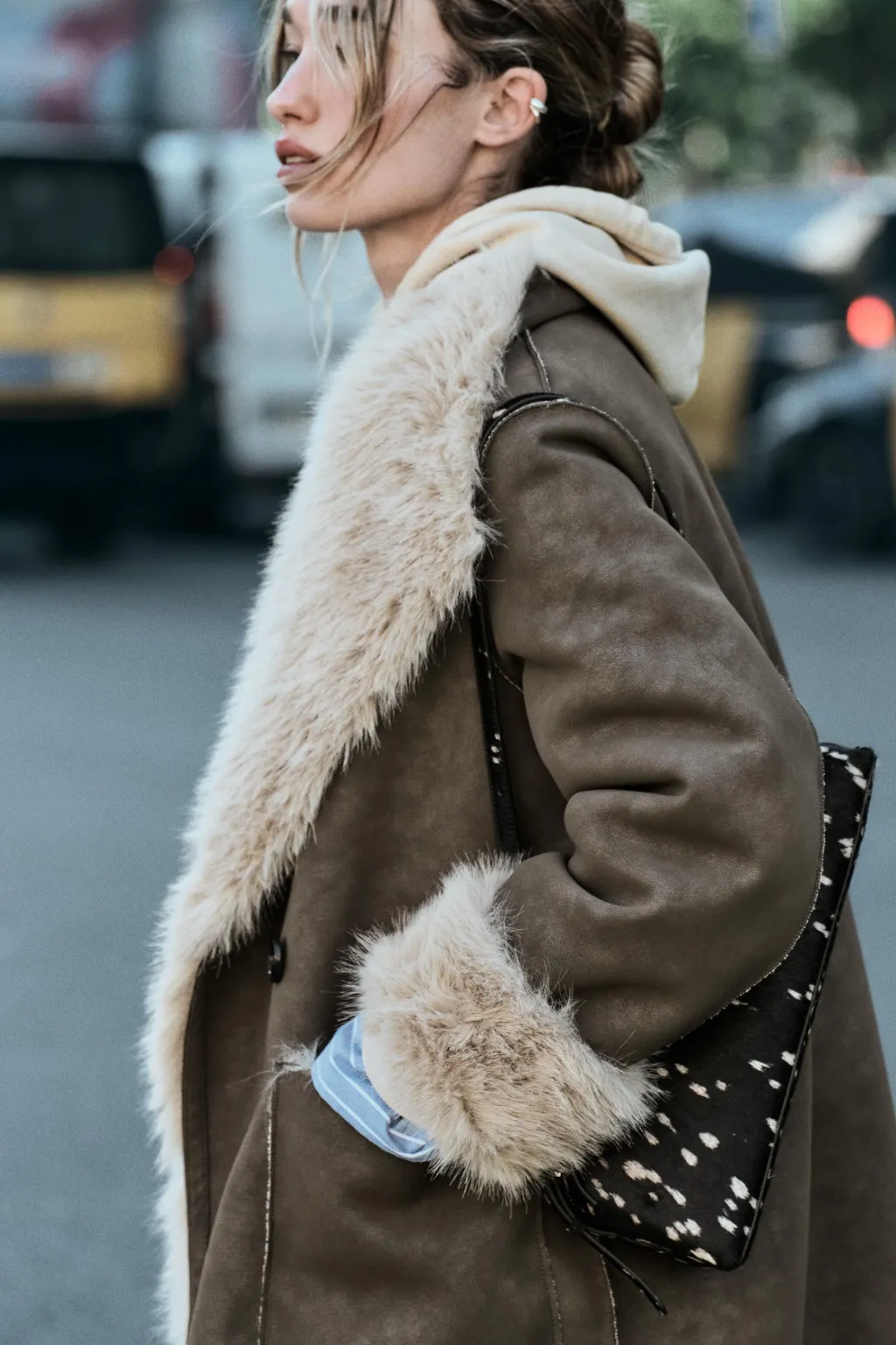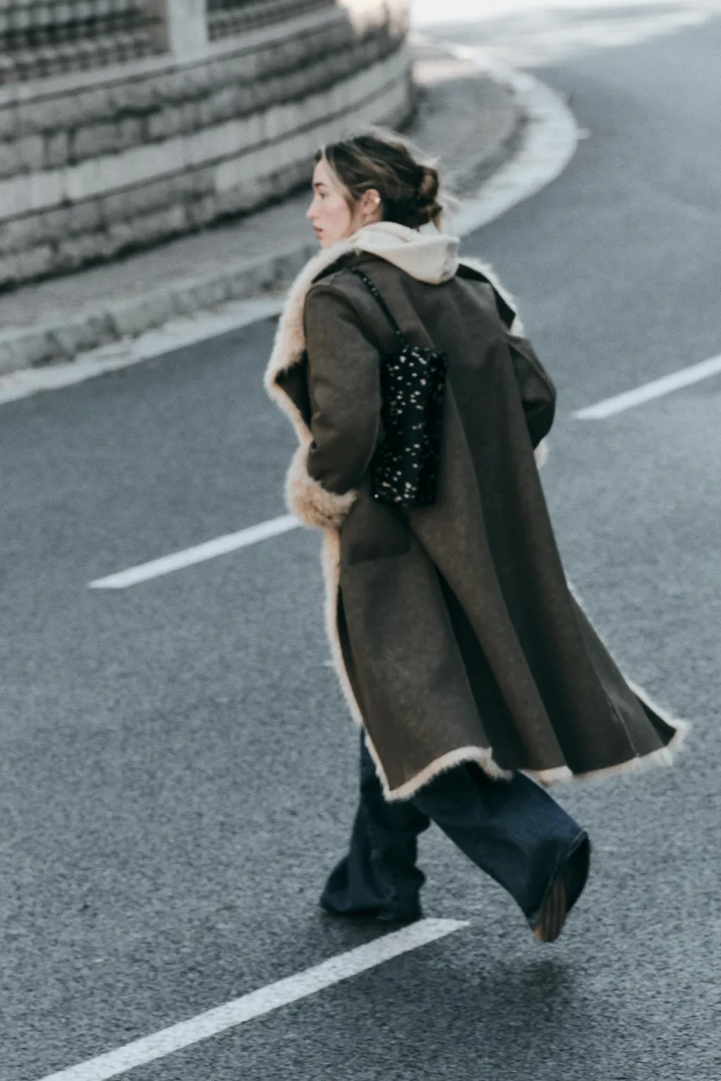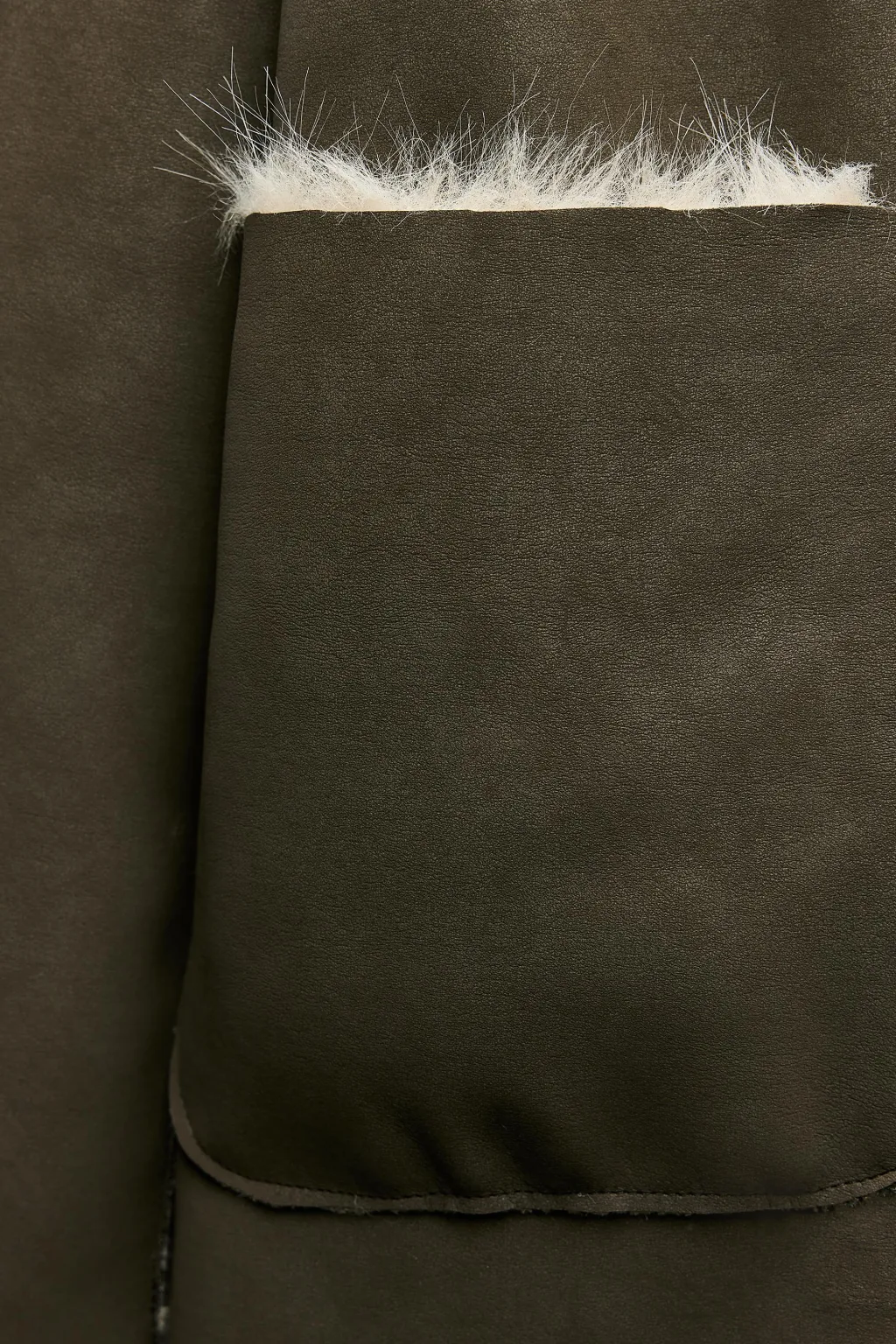 Abrigo de cuello solapa y manga larga. Bolsillos delanteros. Detalle de tejido interior combinado efecto pelo. Cierre frontal cruzado con un botón.