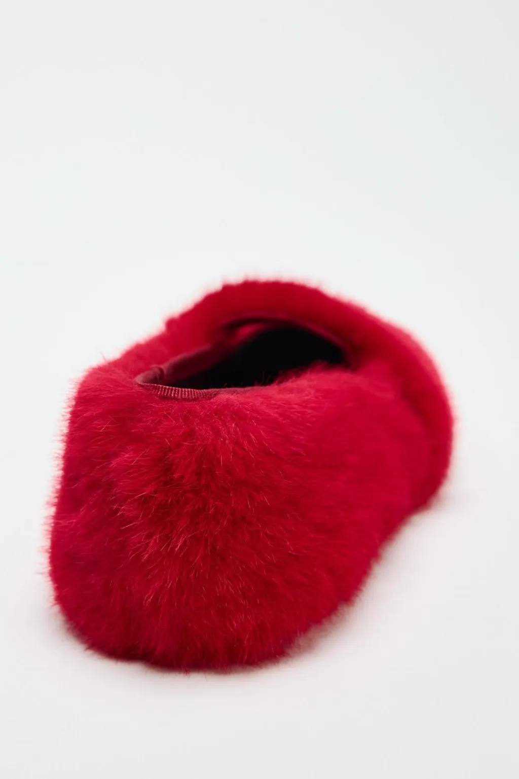 Zapato plano tipo bailarina en pelo. Detalle de tira en la parte delantera. Acabado en punta redonda.