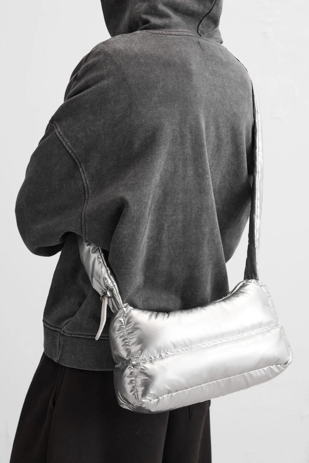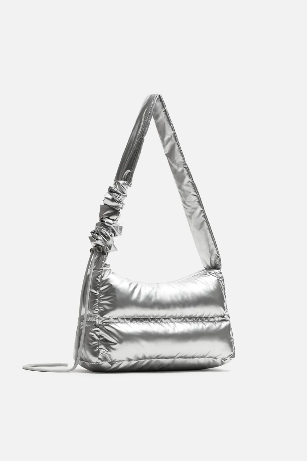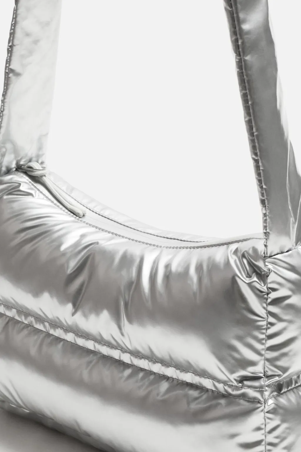 Bandolera acolchada. Fabricada en tejido técnico con acabado brillo. Compartimento principal con cierre mediante cremallera. Interior con bolsillo con cierre mediante cremallera. Asa de hombro ajustable.