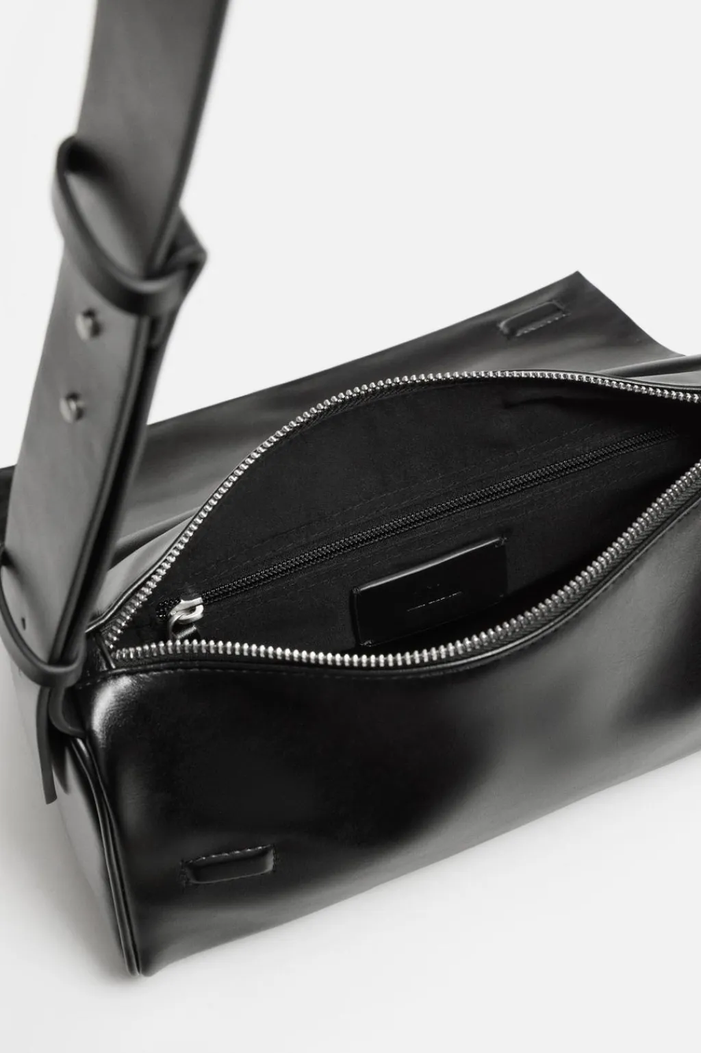 Bandolera lisa. Compartimento principal con cierre mediante solapa y cremallera. El interior cuenta con un bolsillo plano con cierre mediante cremallera. Asa de hombro ajustable.