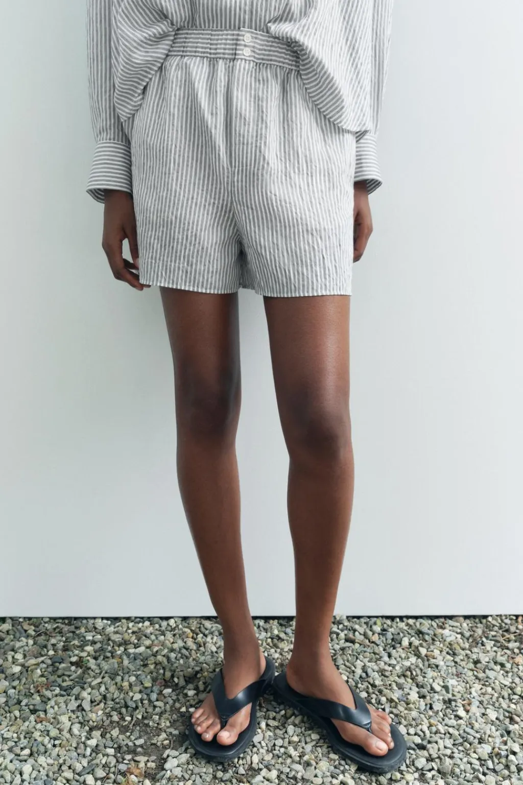 Bermuda de tiro alto con cintura elástica. Bolsillos laterales. Detalle de botones en cintura. Bajo con aberturas laterales.